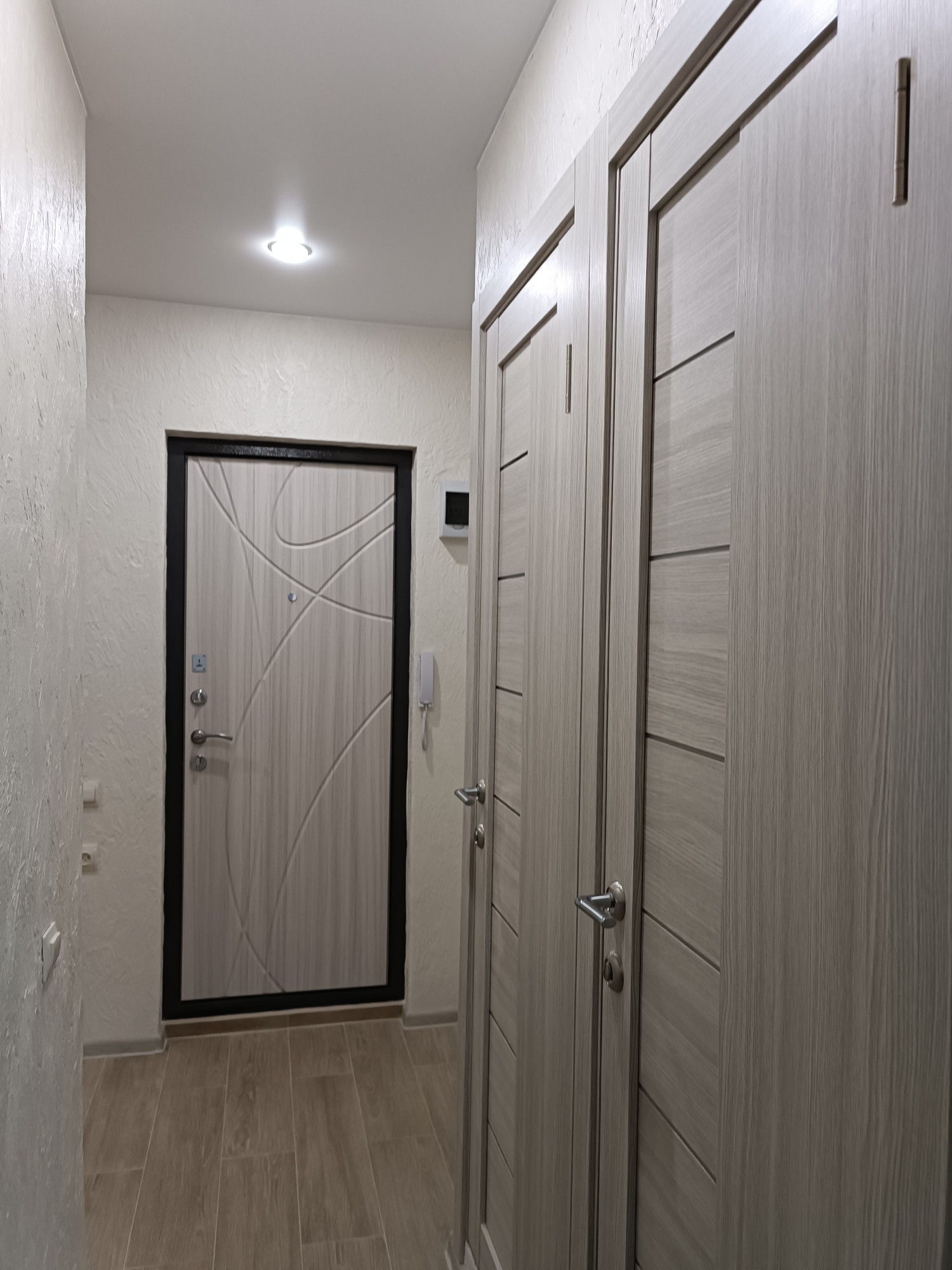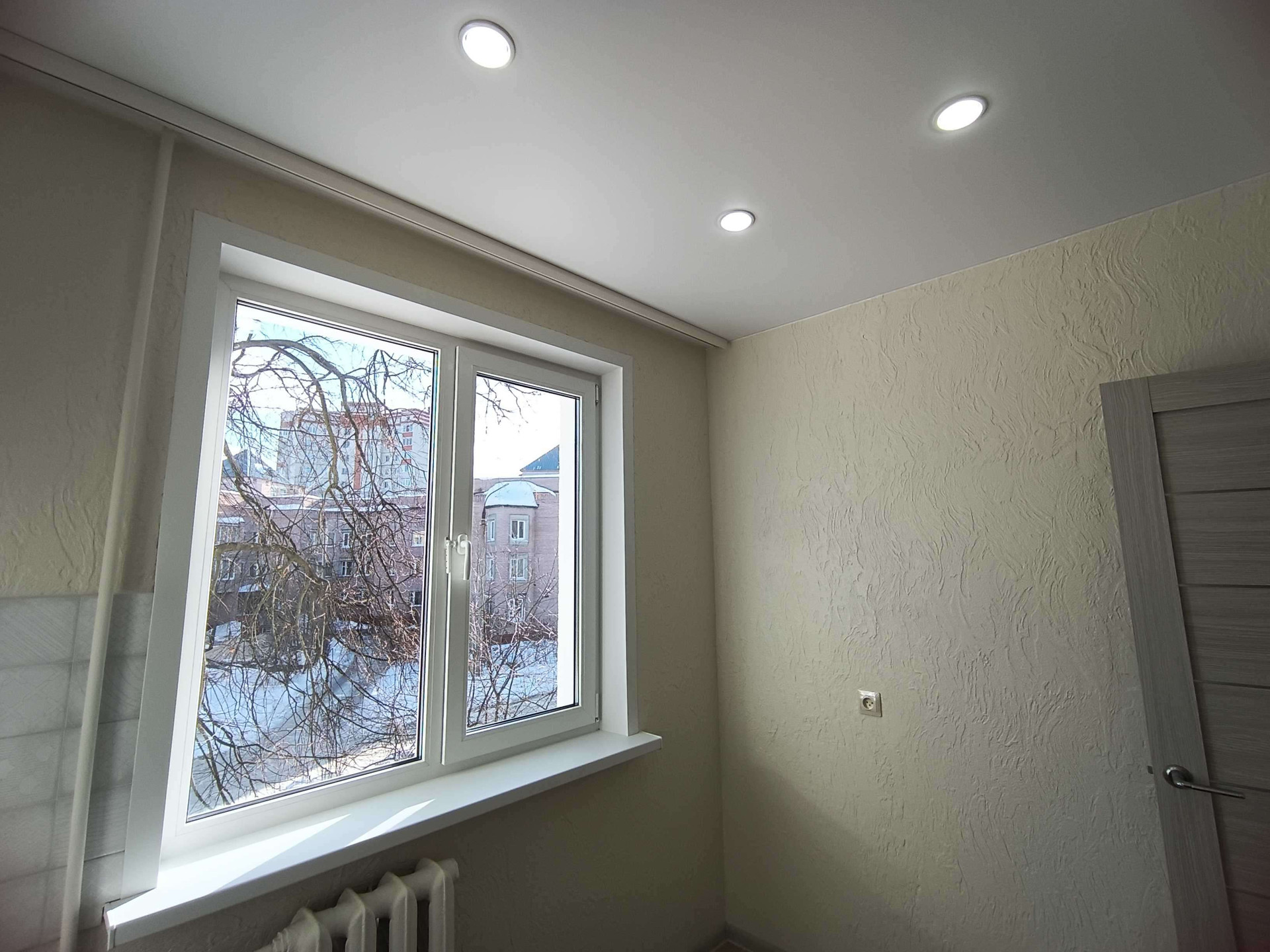 - новые натяжные потолки со светильниками;