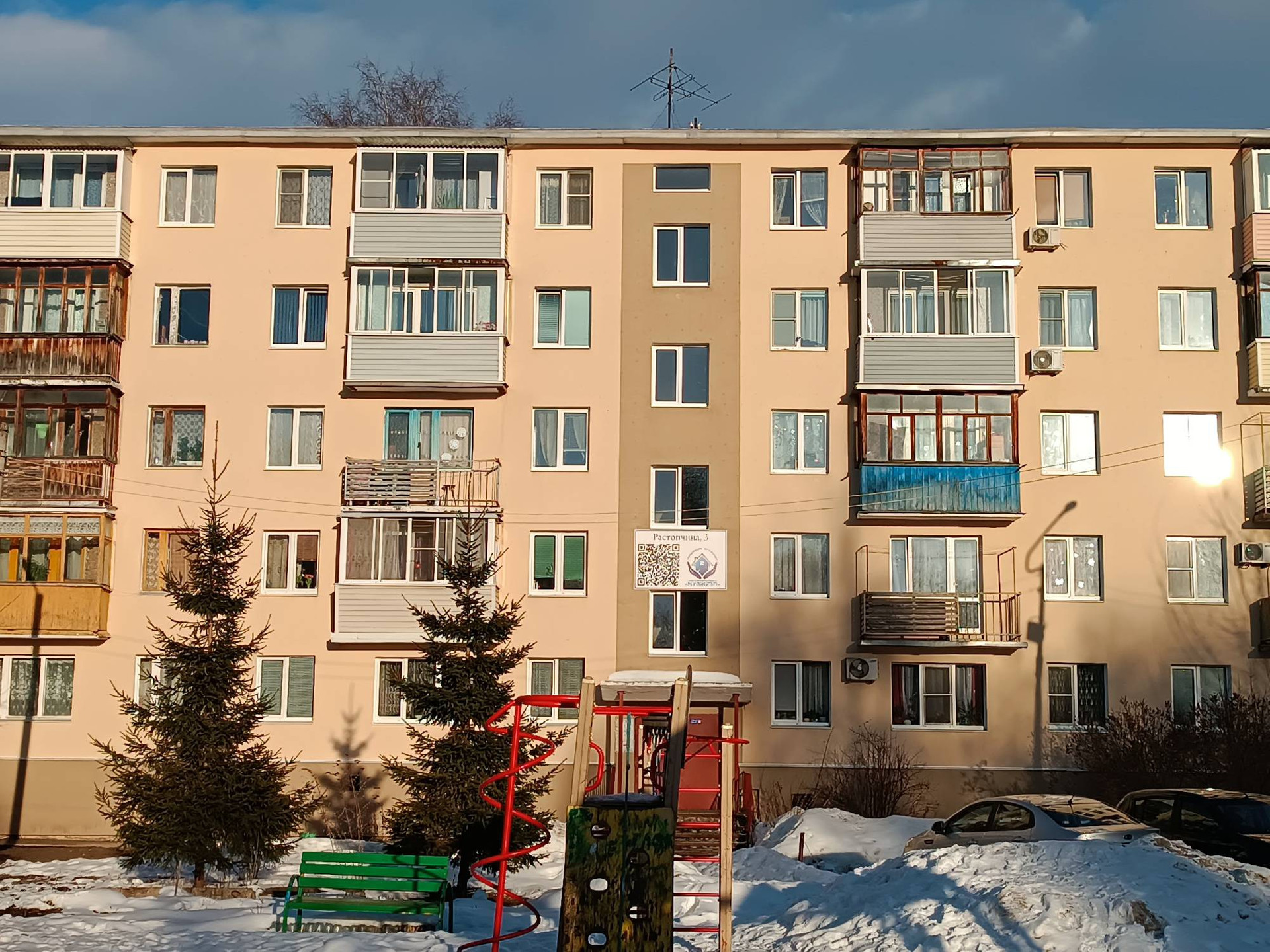 Рядом с домом: большая детская площадка, остановка общественного транспорта, школа, детский сад, магазины.
