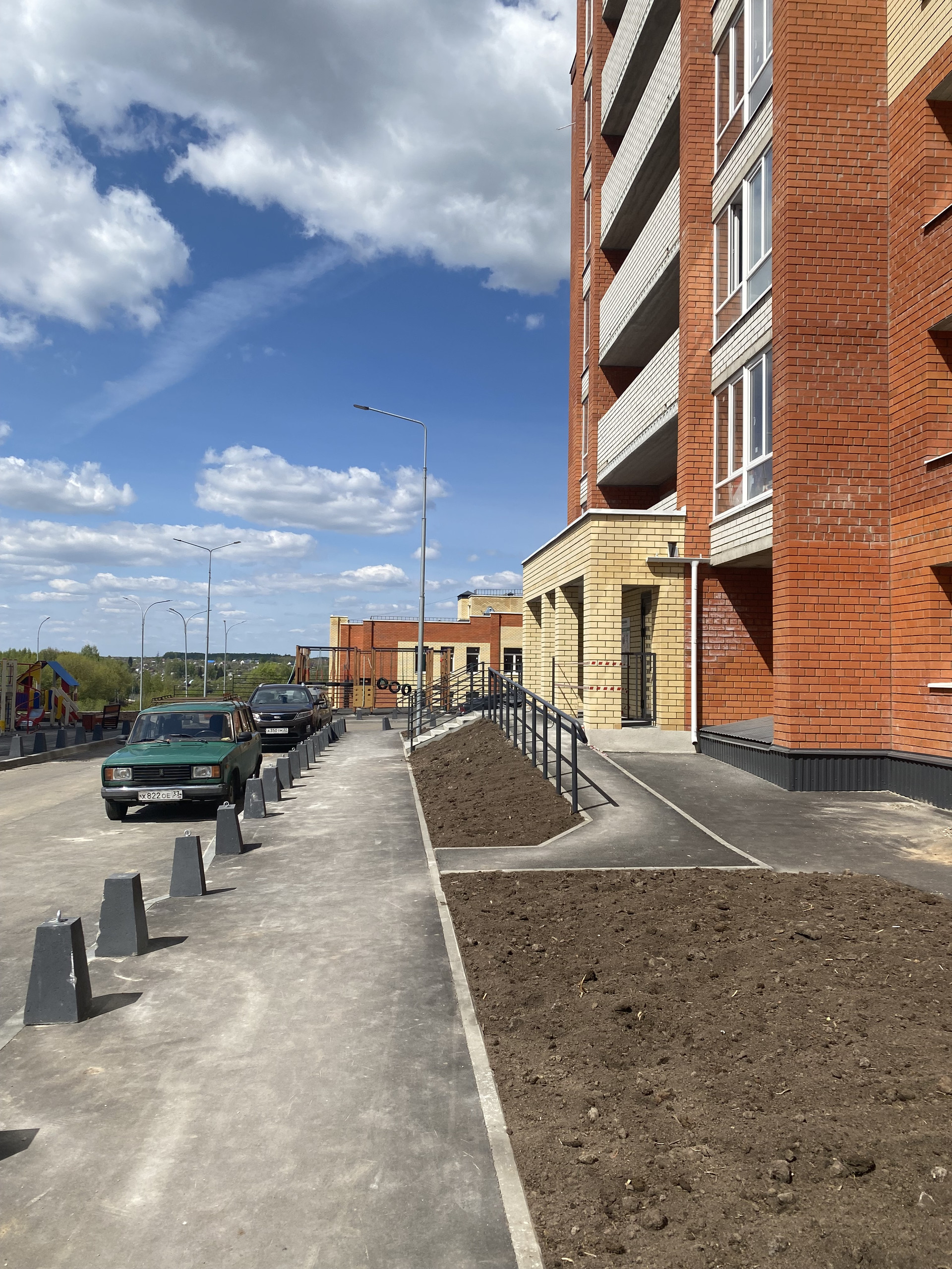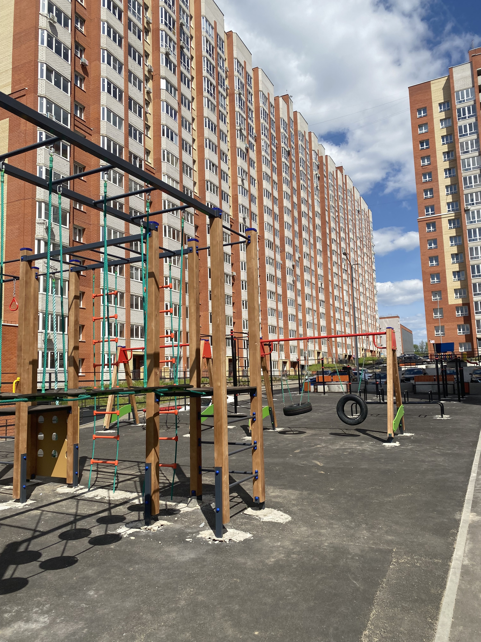 Самое большое количество парковочных мест из все корпусов, новая детская площадка из безопасных и прочных материалов, спортивная площадка.