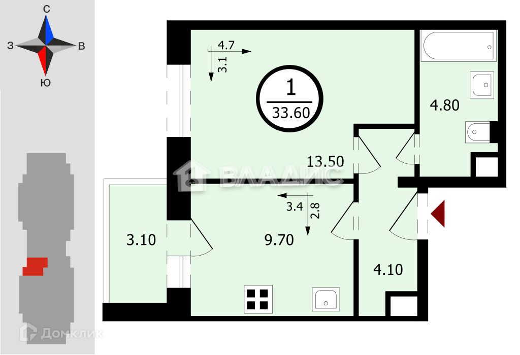 Количество комнат 1