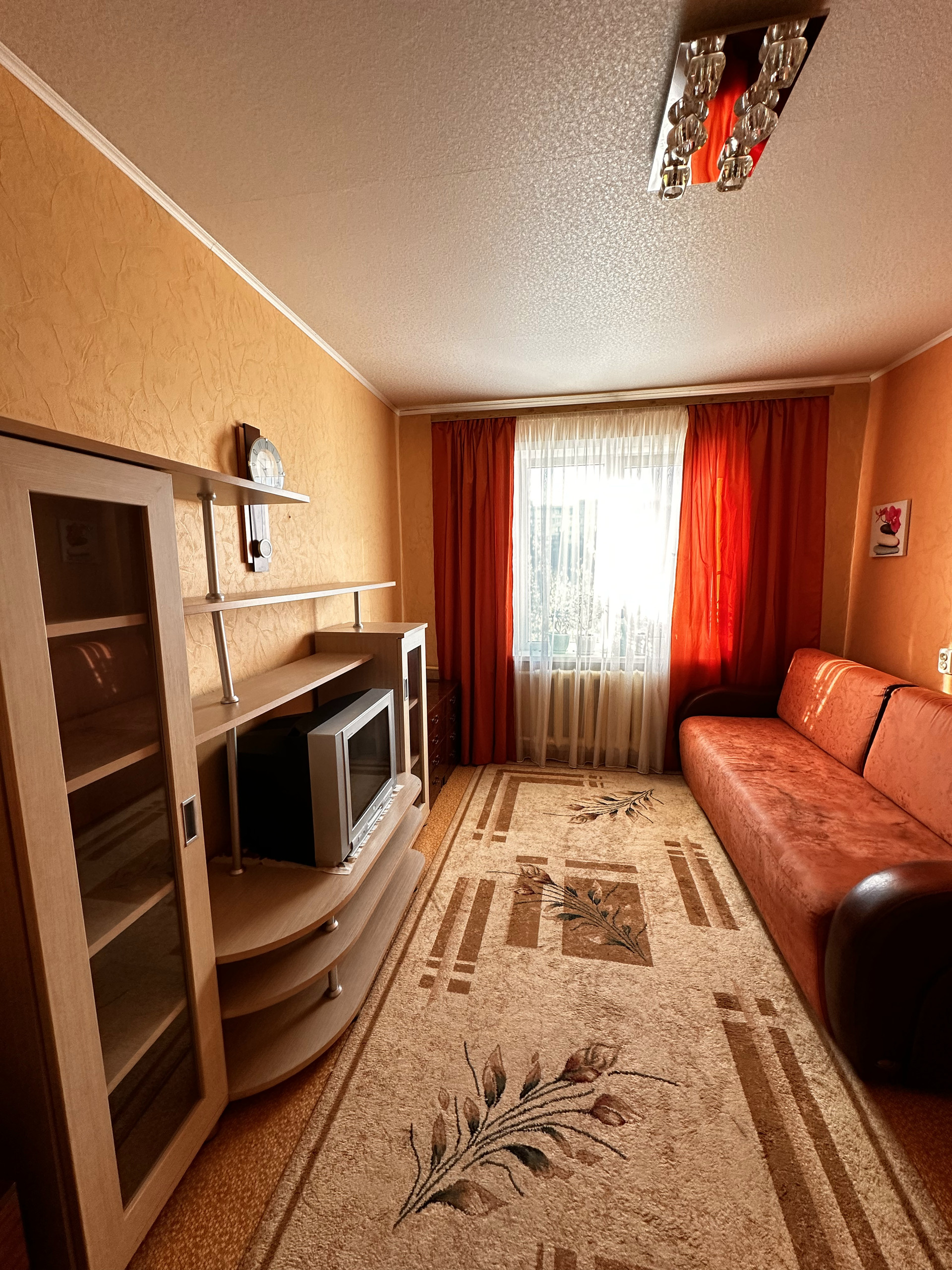 Квартира находится на 9 этаже, из окон открывается красивый вид на зелёные насаждения и стадион. Идеально подойдёт для семьи с детьми.
