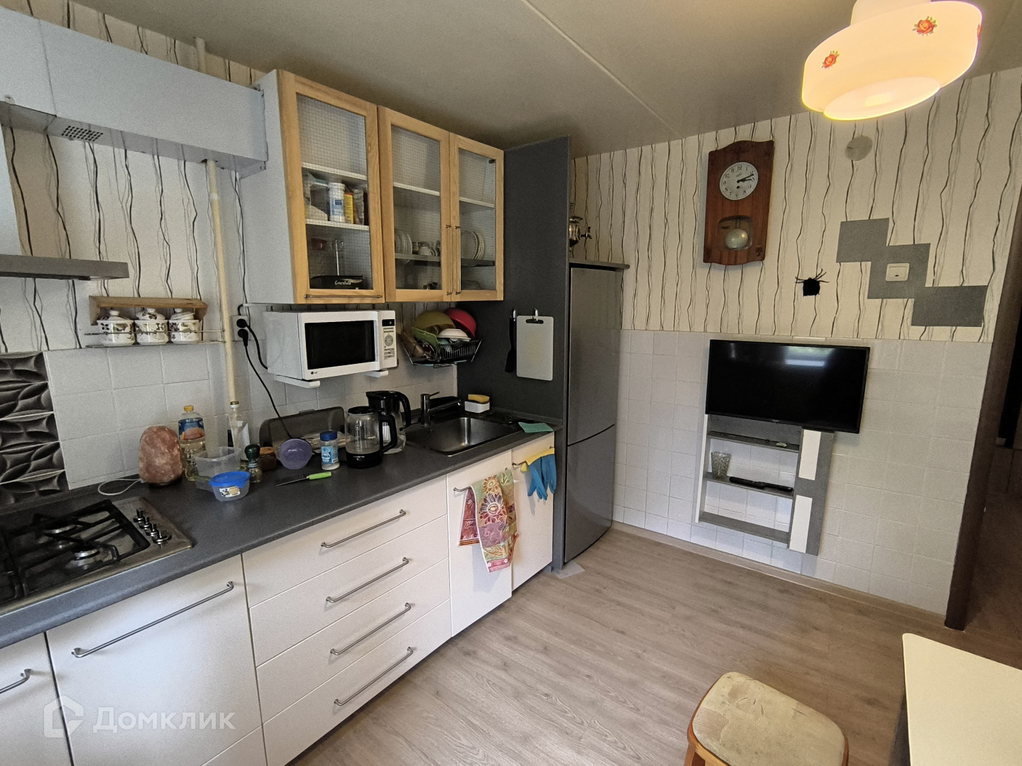 В квартире остаётся: кухонный гарнитур, плита, холодильник, посуда, стиральная машина, диван, шкафы, кровать. Можно заезжать.