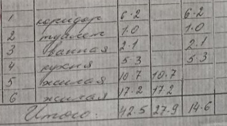 Общая площадь 42.5 м2