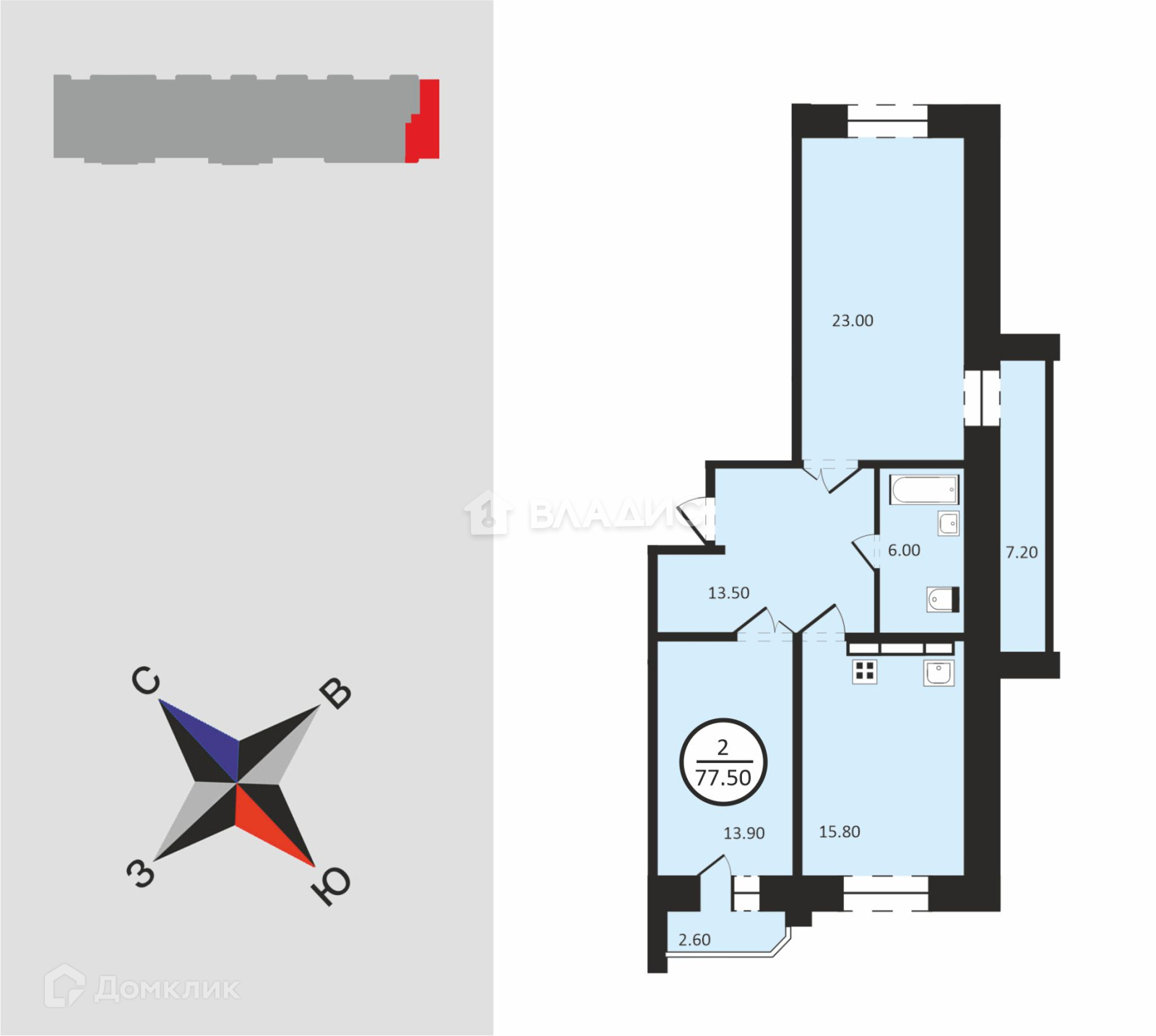 Общая площадь 77.5 м2