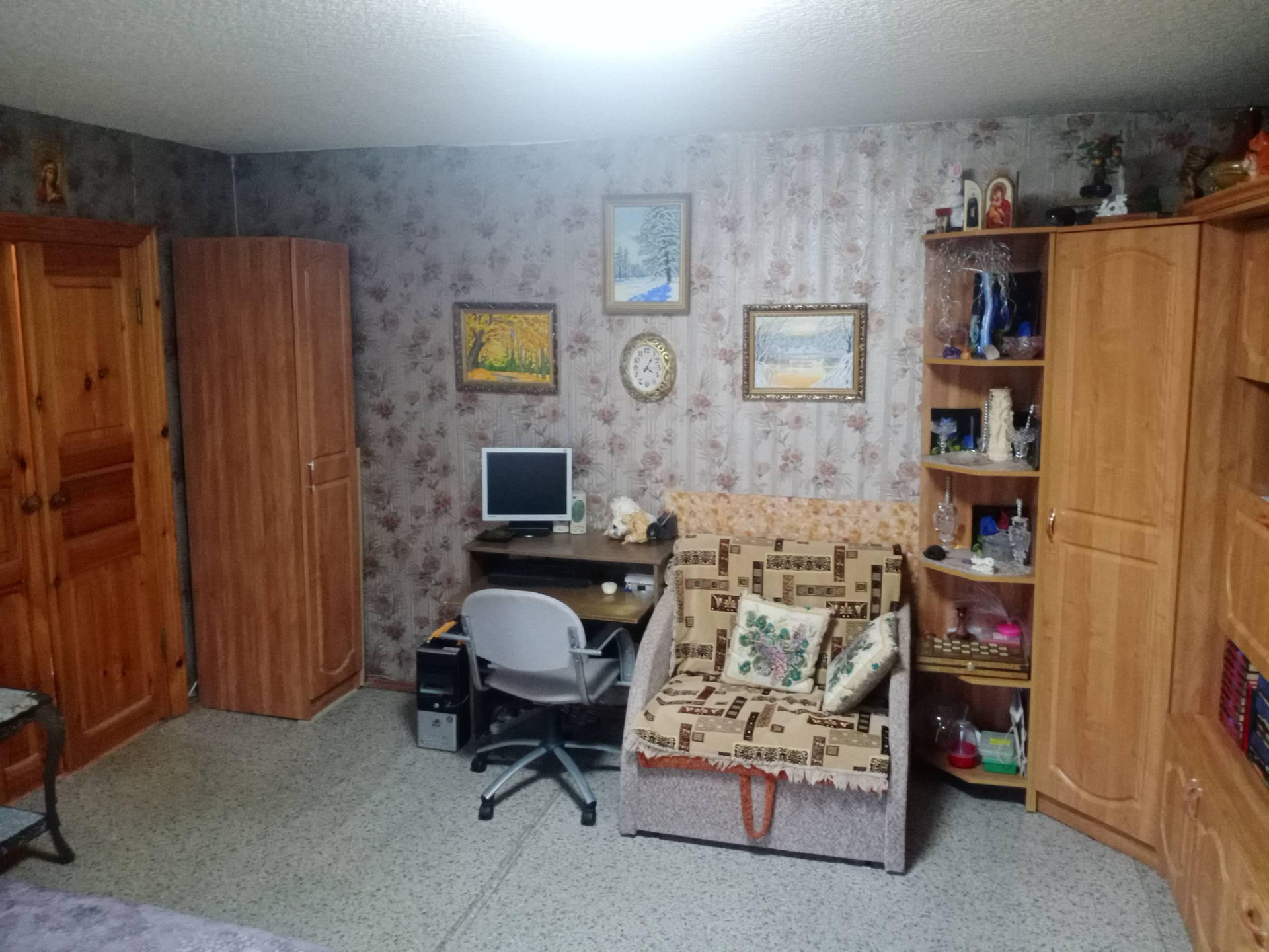 Помимо прочего, в квартире проведён косметический ремонт, что позволит новым владельцам сразу же заселиться без дополнительных вложений. Также стоит отметить, что во всей квартире установлены межкомнатные деревянные двери в одном стиле, ПВХ окна, остекленный балкон, обшит «вагонкой». Напольное покрытие – линолеум. Система хранения в коридоре и кухонный гарнитур с бытовой техникой, включены в стоимость квартиры, что является большим плюсом для комфортного проживания.