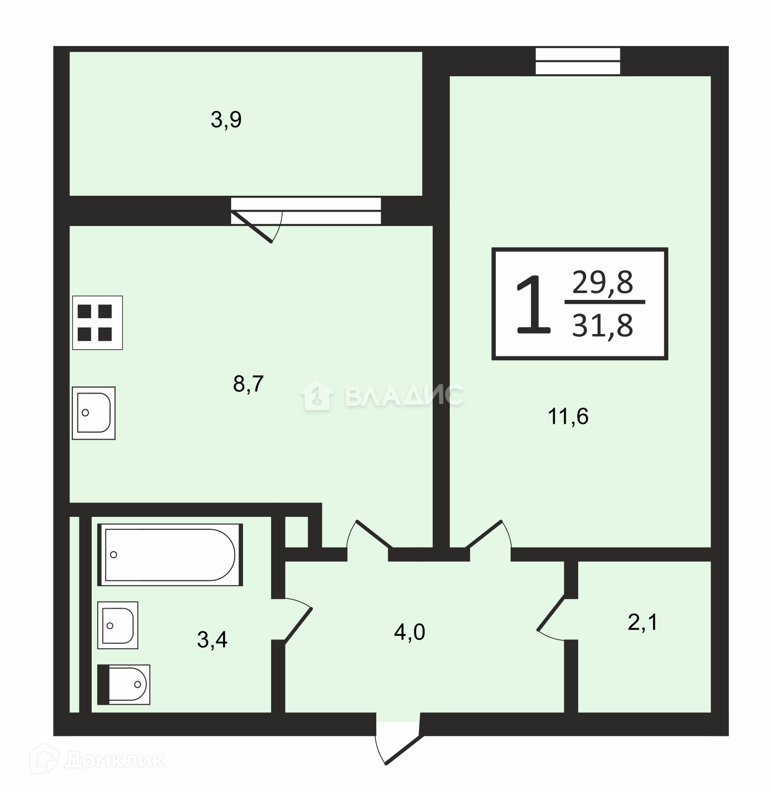 Общая площадь 32 м2