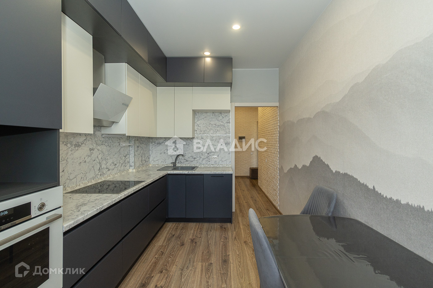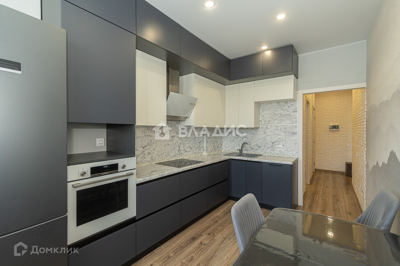 – Кухня 12 кв. м. со встроенной техникой: духовой шкаф Bosch, посудомоечная машина Bosch, холодильник Bosch.