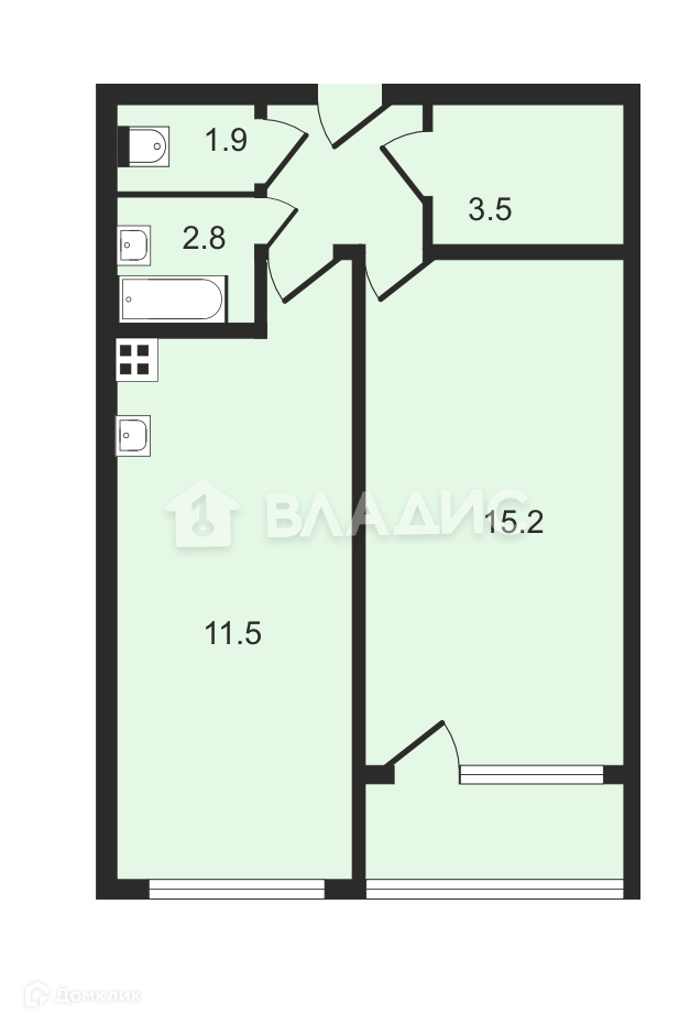 – Раздельный санузел: ванна - 3 кв. м ; санузел - 2 кв. м. ;