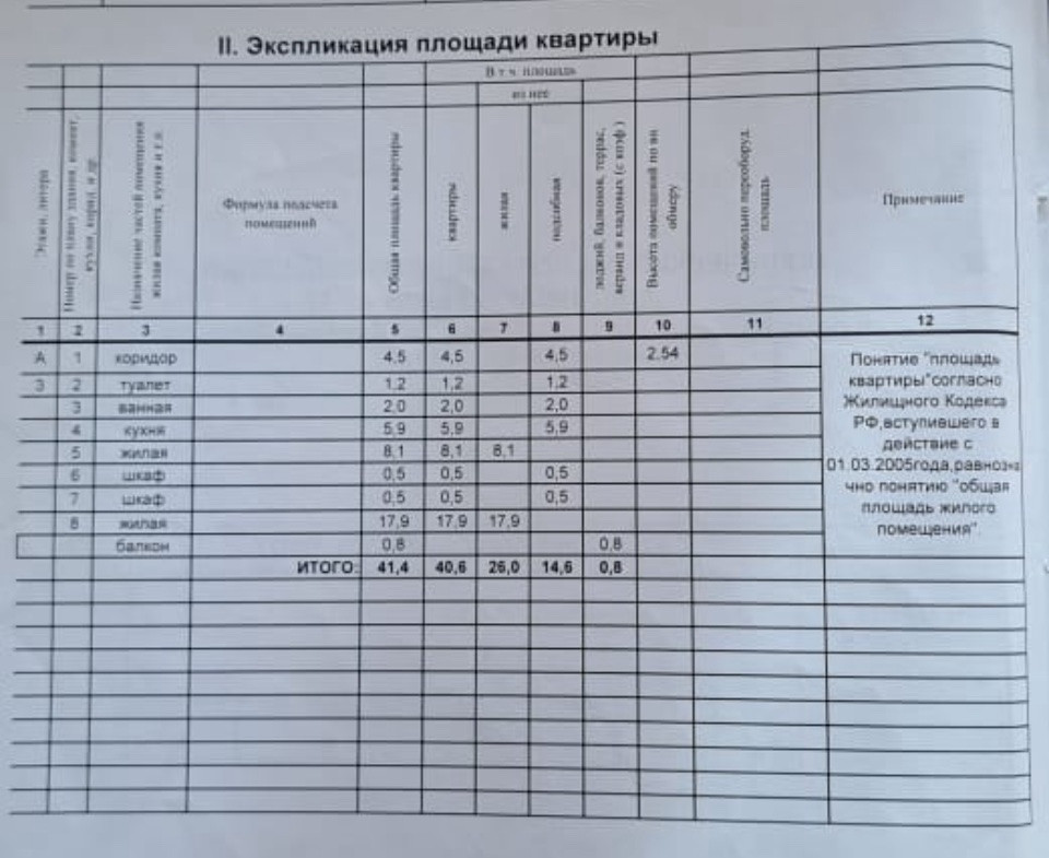 Общая площадь 41.4 м2