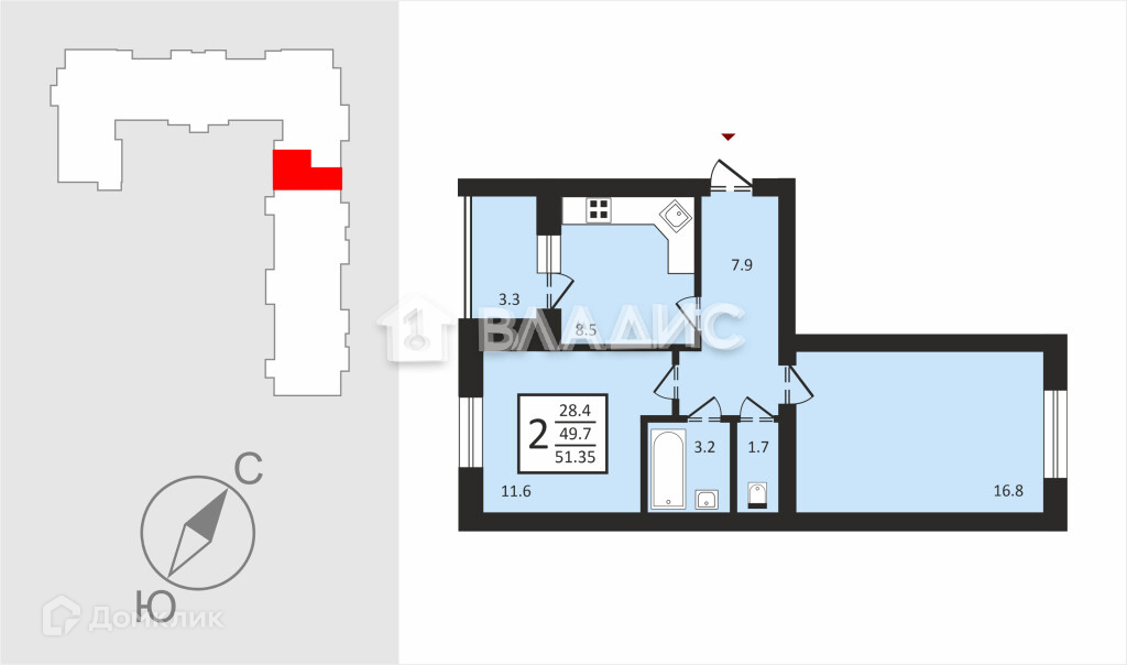 Общая площадь 49.7 м2