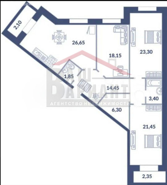 Площадь кухни 26.49 м2