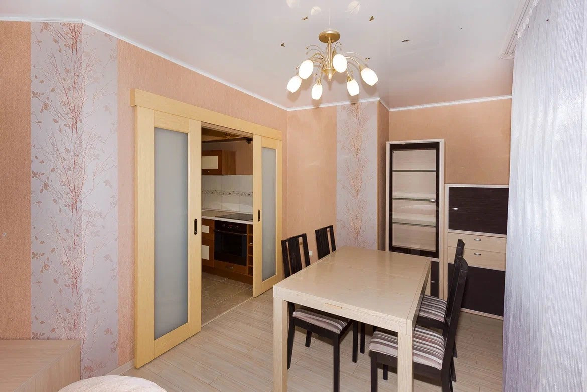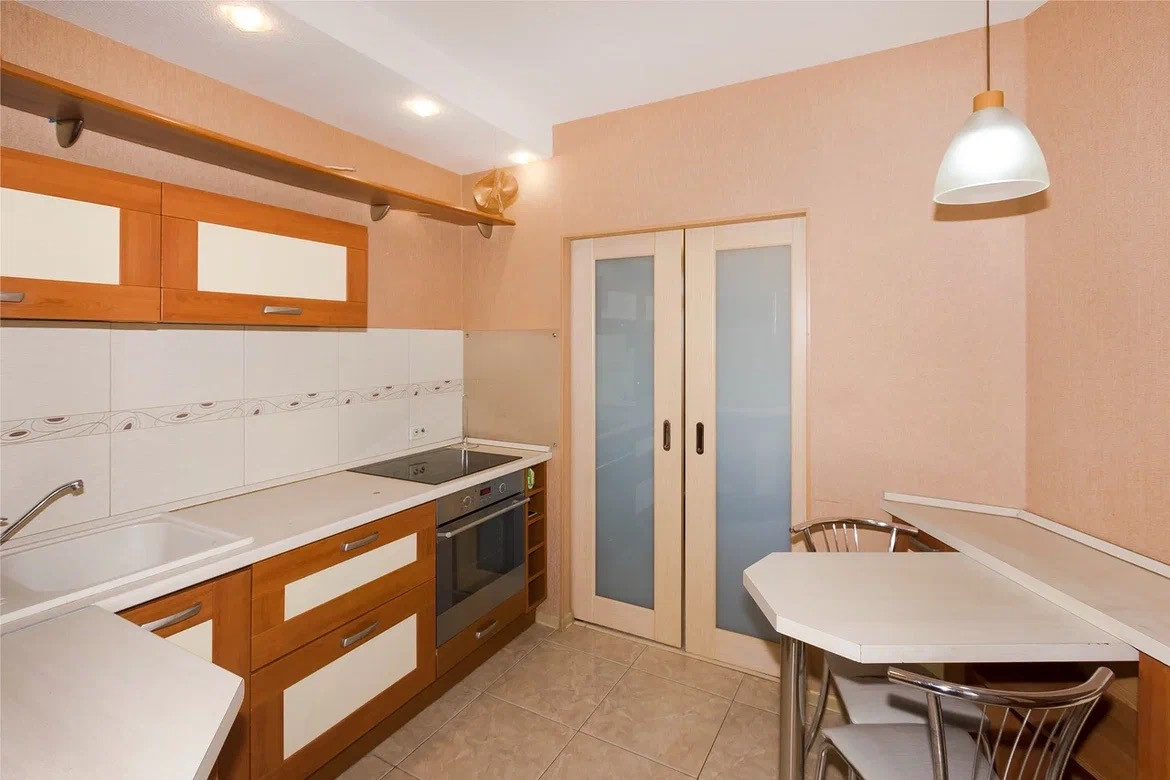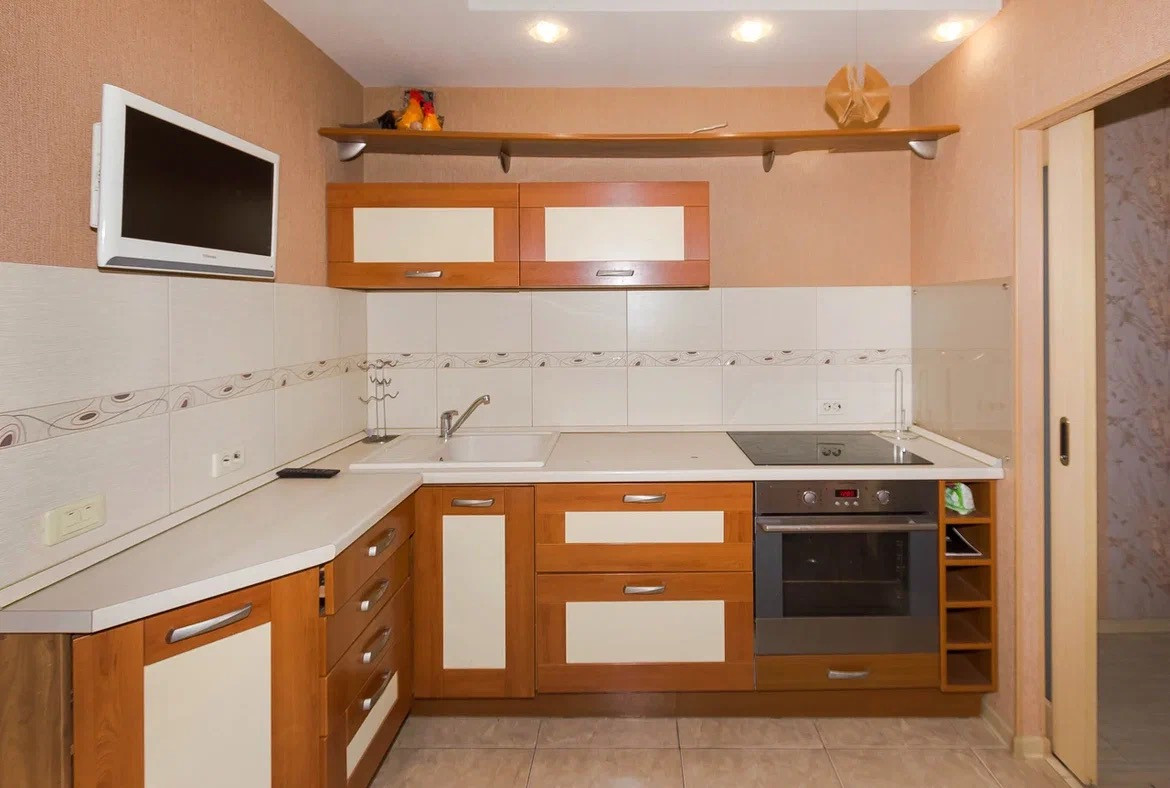 Функциональная планировка-уютная кухня, которая при открытии двери в зал, становится большой кухней-гостинной.