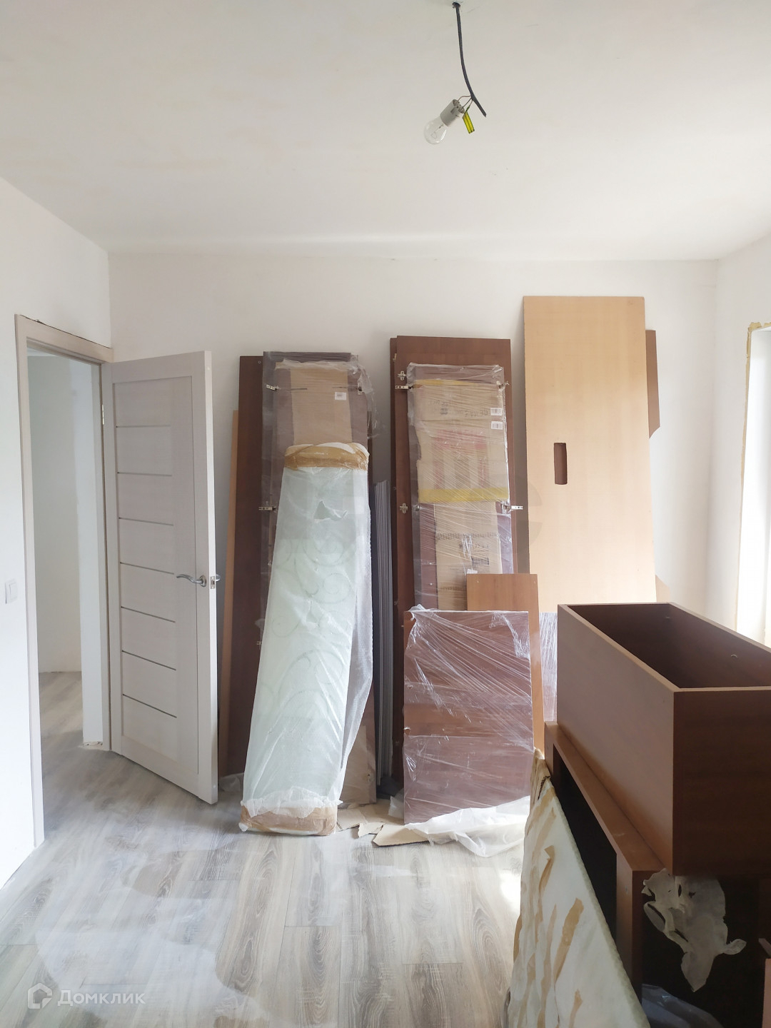Постелен ламинат. Смонтирована электропроводка.