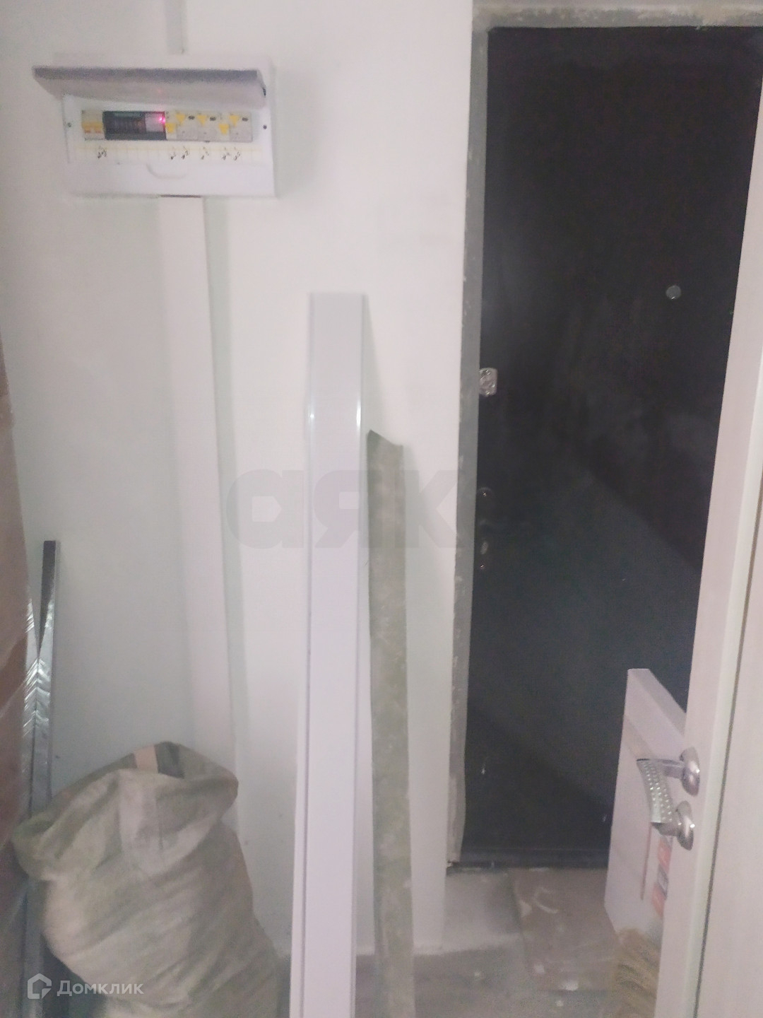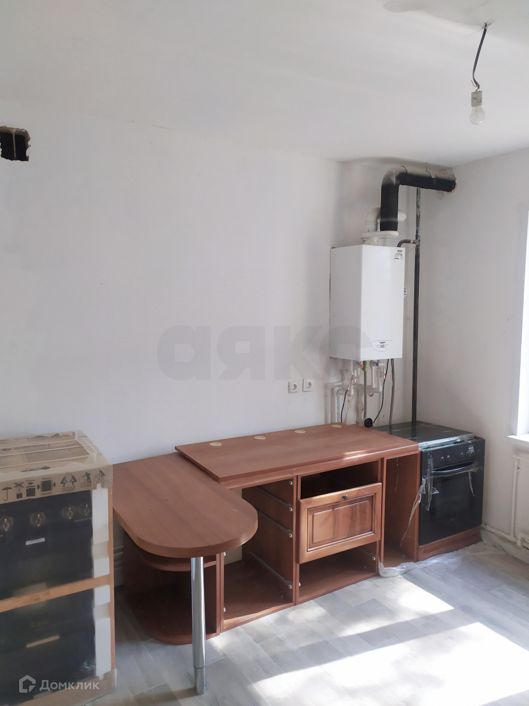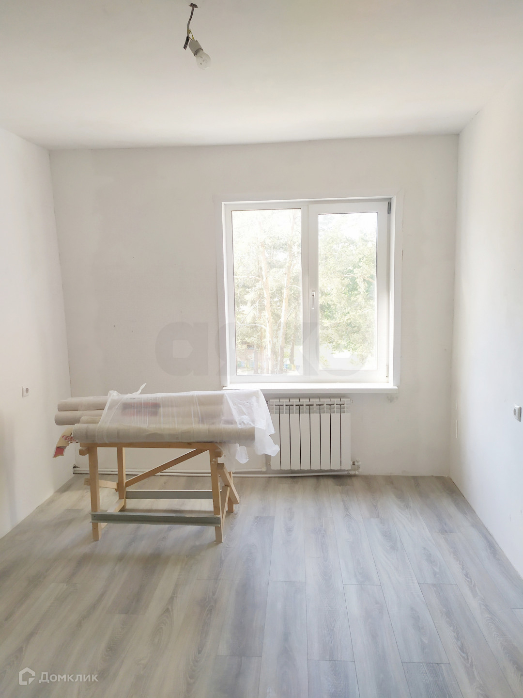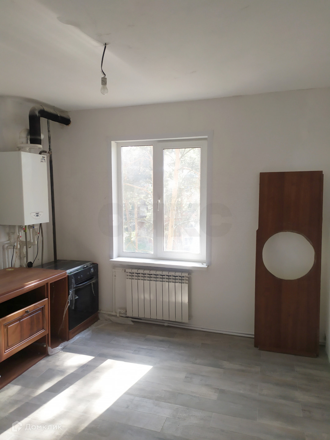 Частично выполнены ремонтные работы: выровнены стены и залит пол.