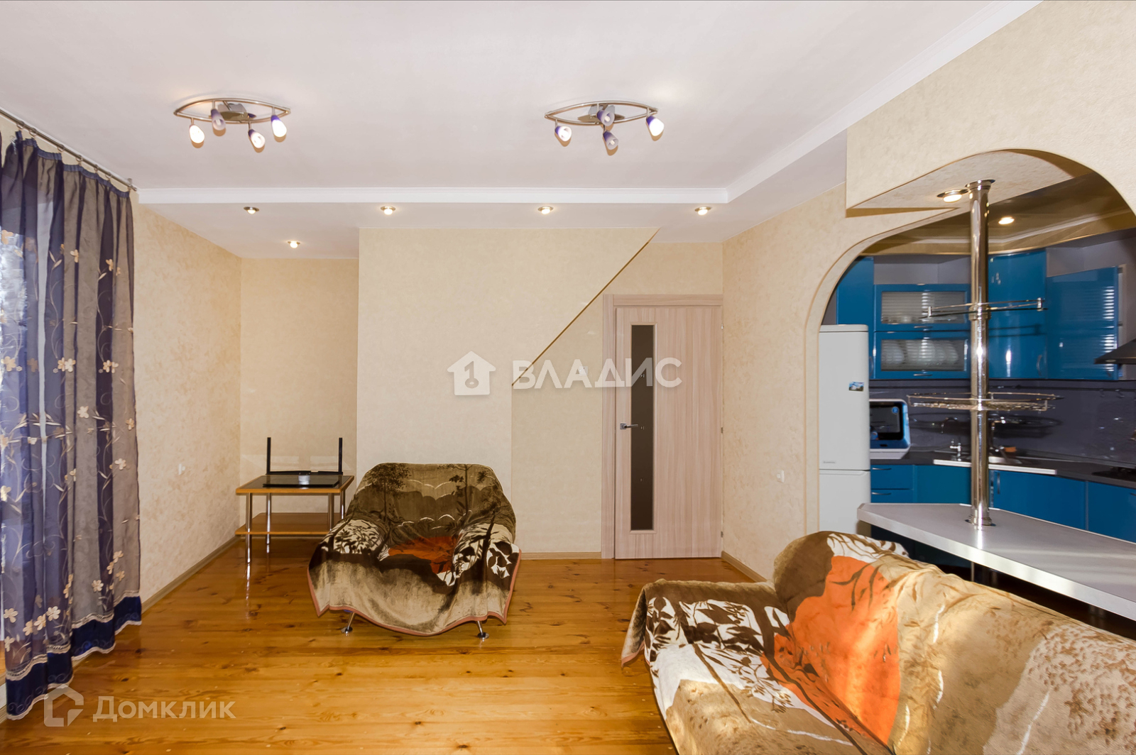 Квартира располагается в двух этажах. На первом -  кухня 12,5квм, гостинная 20,5квм, санузел, прихожая. Второй этаж квартиры включает в себя две спальных комнаты 14 и 13квм, просторный санузел, гардеробную. На каждом этаже застекленная лоджия с выходом из комнат. В прихожей сделан теплый пол, в комнатах установлены дорогие деревянные стеклопакеты. Во всей квартире выполнен качественный ремонт из натуральных материалов.