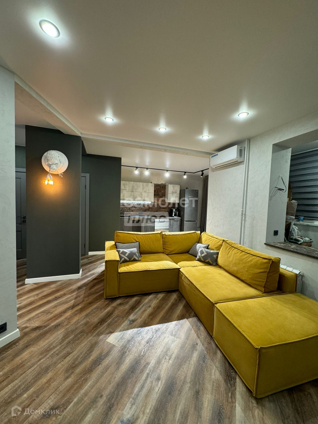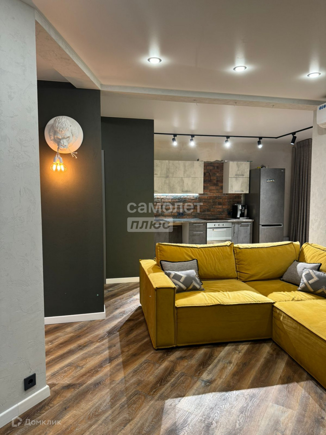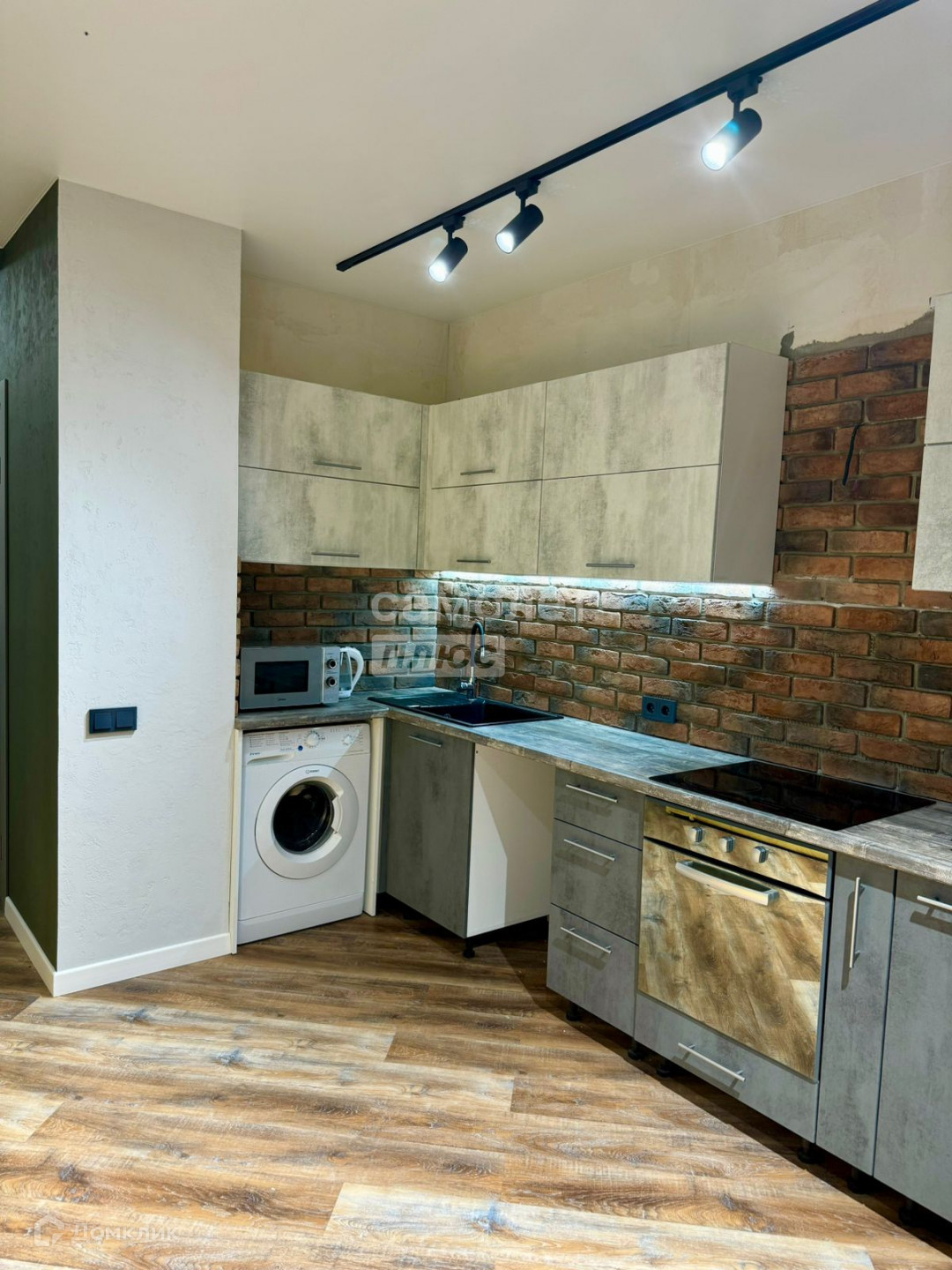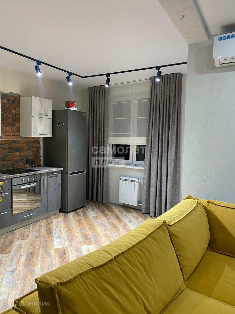В квартире выполнен дизайнерский ремонт из дорогих качественных материалов. На полу кварцвинил, натяжные потолки, хорошее освещение, зона кухни в декоративном камне, стены отштукатурены и покрашены. Лоджия застеклена, утеплена и объединена с жилой зоной, кондиционер.