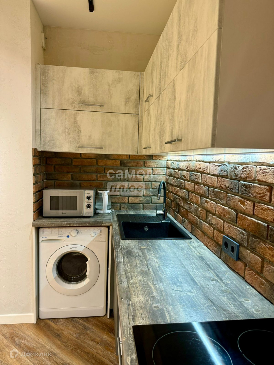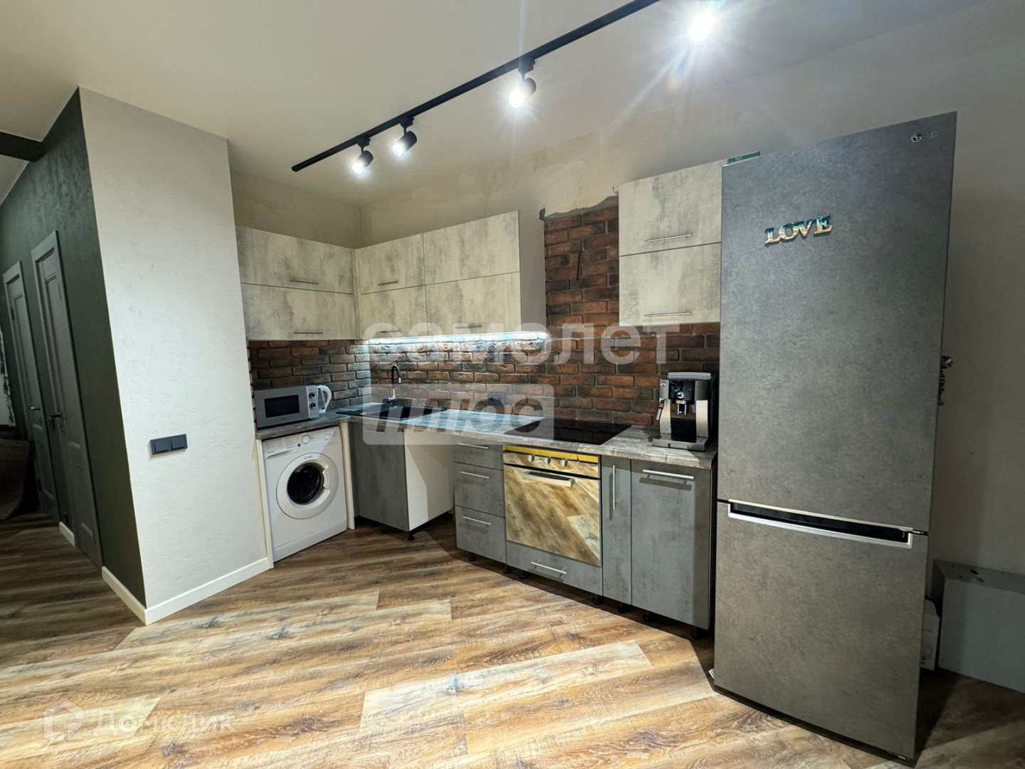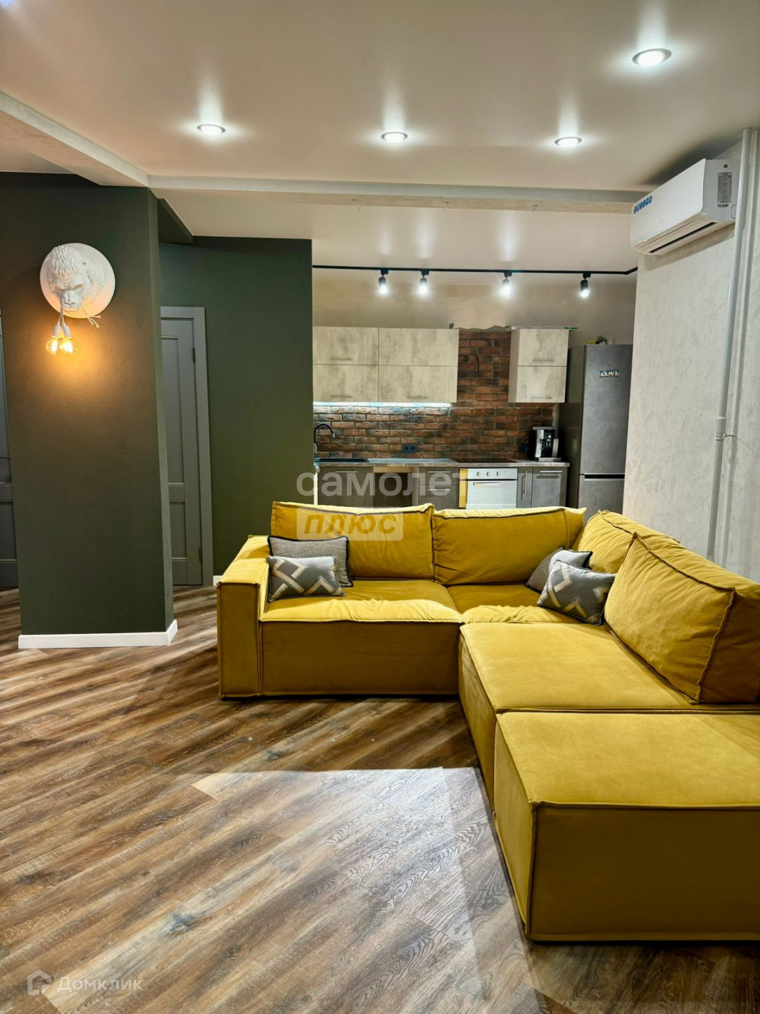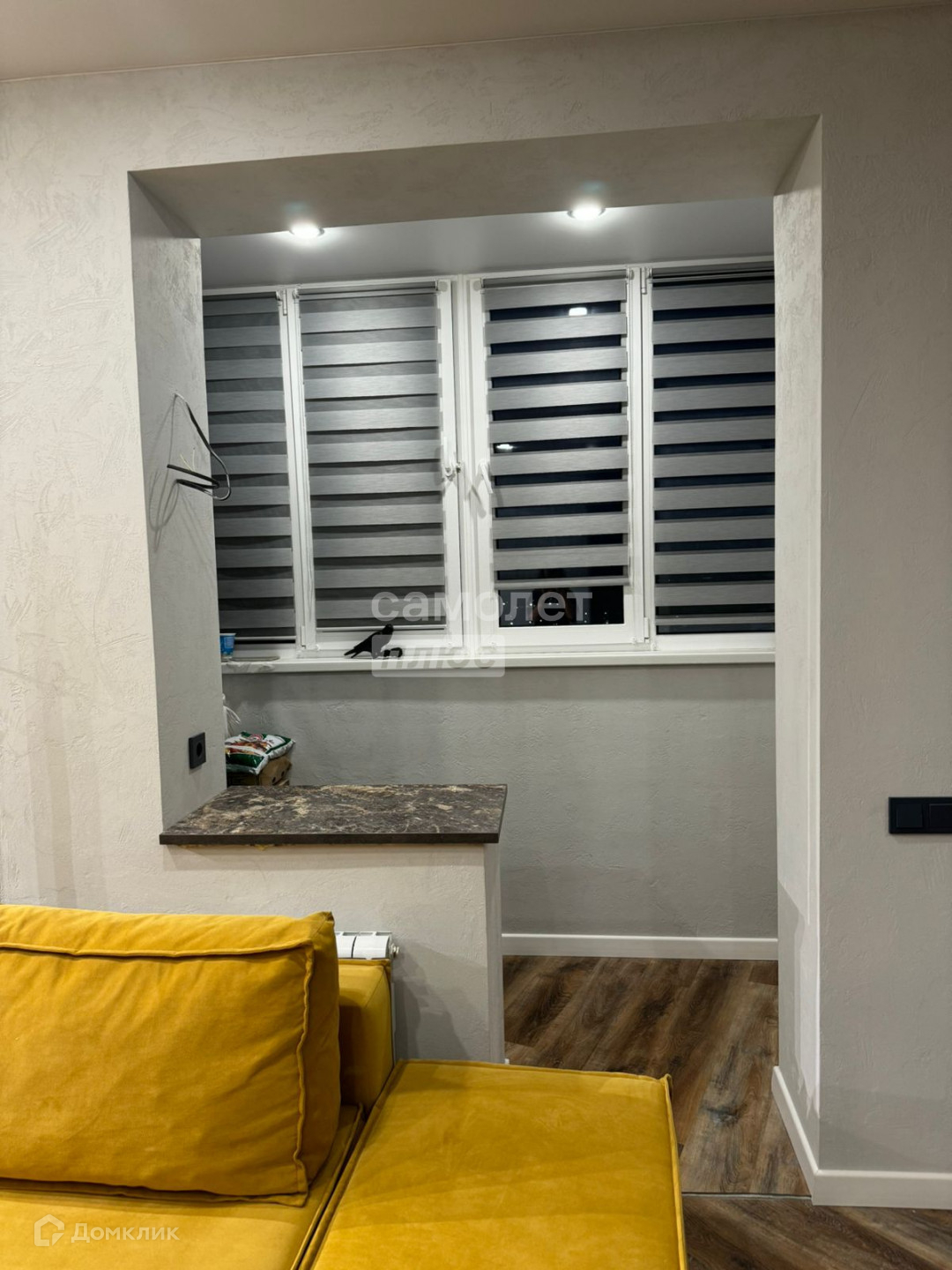 В квартире выполнен дизайнерский ремонт из дорогих качественных материалов. На полу кварцвинил, натяжные потолки, хорошее освещение, зона кухни в декоративном камне, стены отштукатурены и покрашены. Лоджия застеклена, утеплена и объединена с жилой зоной, кондиционер.