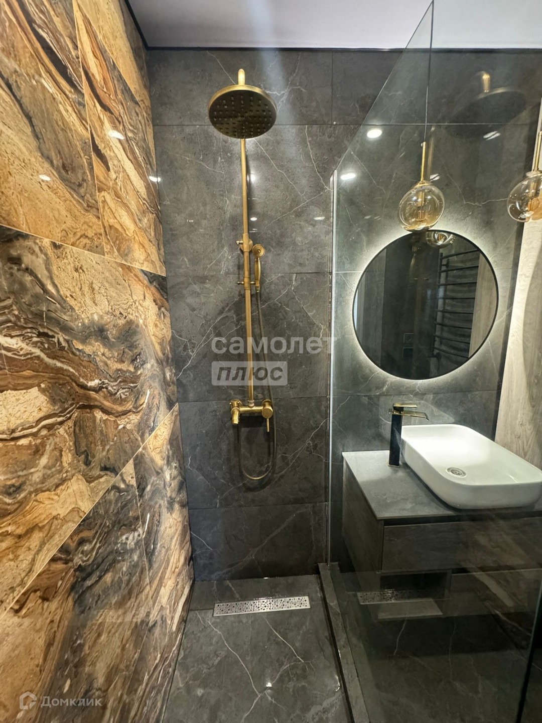 В душе и туалете дорогая качественная фурнитура, плитка, теплый пол с климат контролем.
