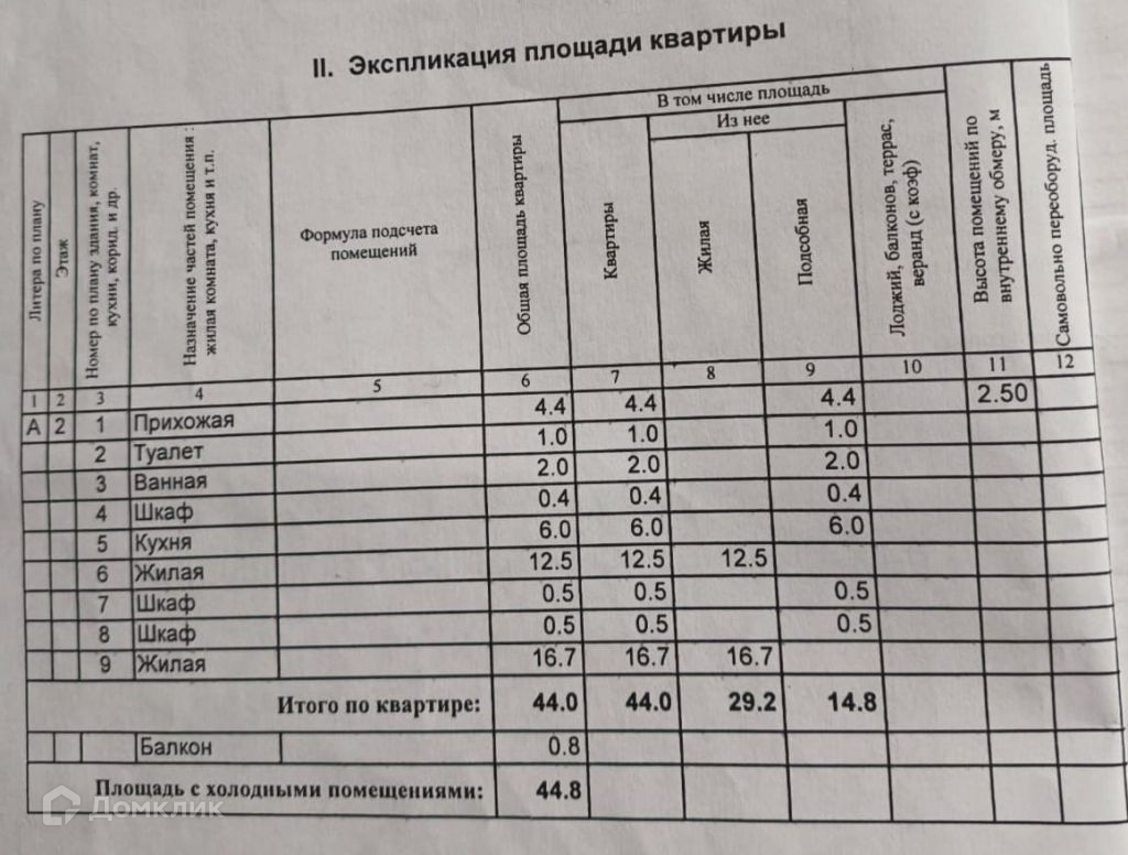 Общая площадь 44 м2