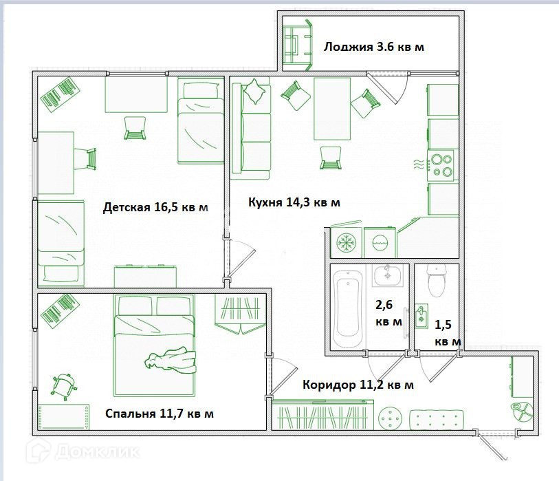 Раздельные, правильной формы, комнаты (16,5 и 11,7 кв м) со стильными обоями, удовлетворяют потребностям семье с детишками или паре без детей.