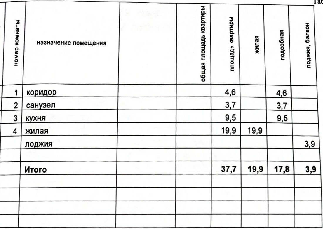 Общая площадь 37.7 м2