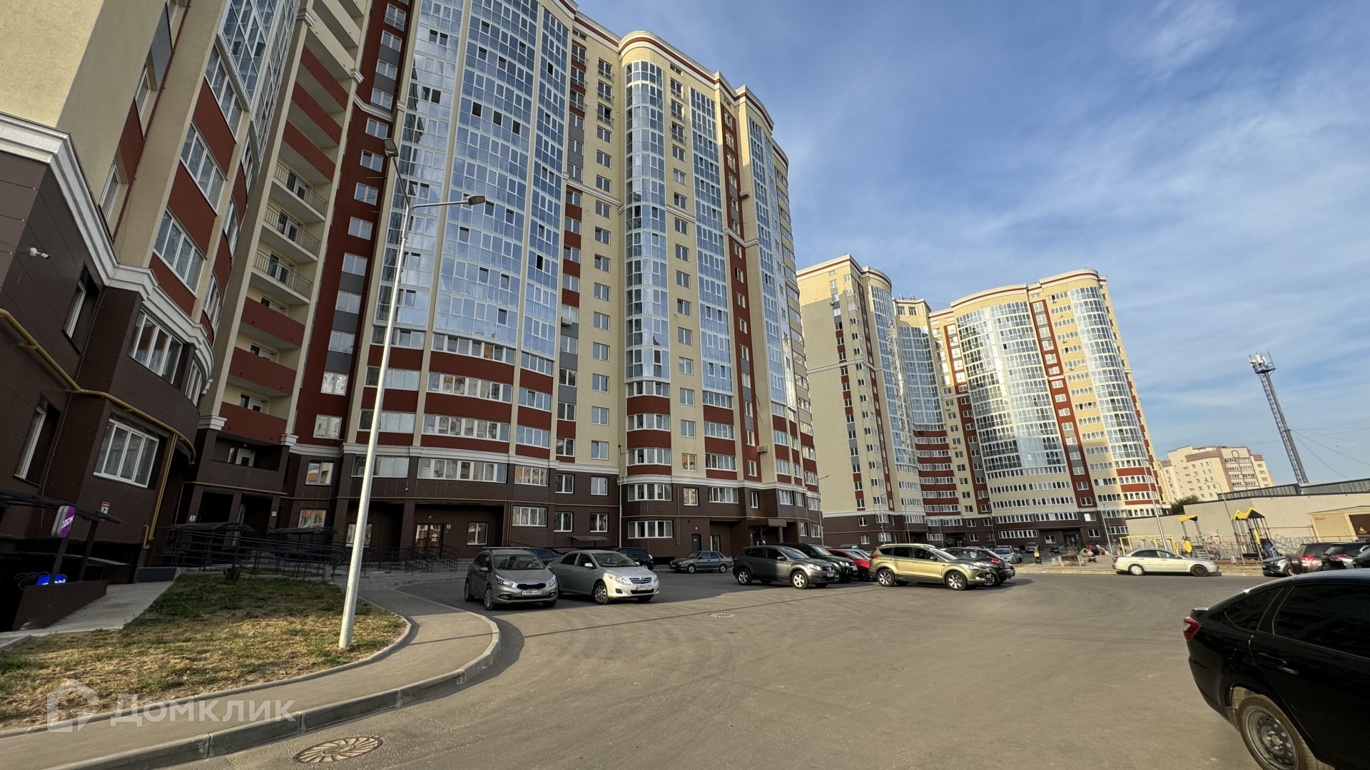 Во дворе оборудована детская и спортивная площадки, достаточно много машиномест.