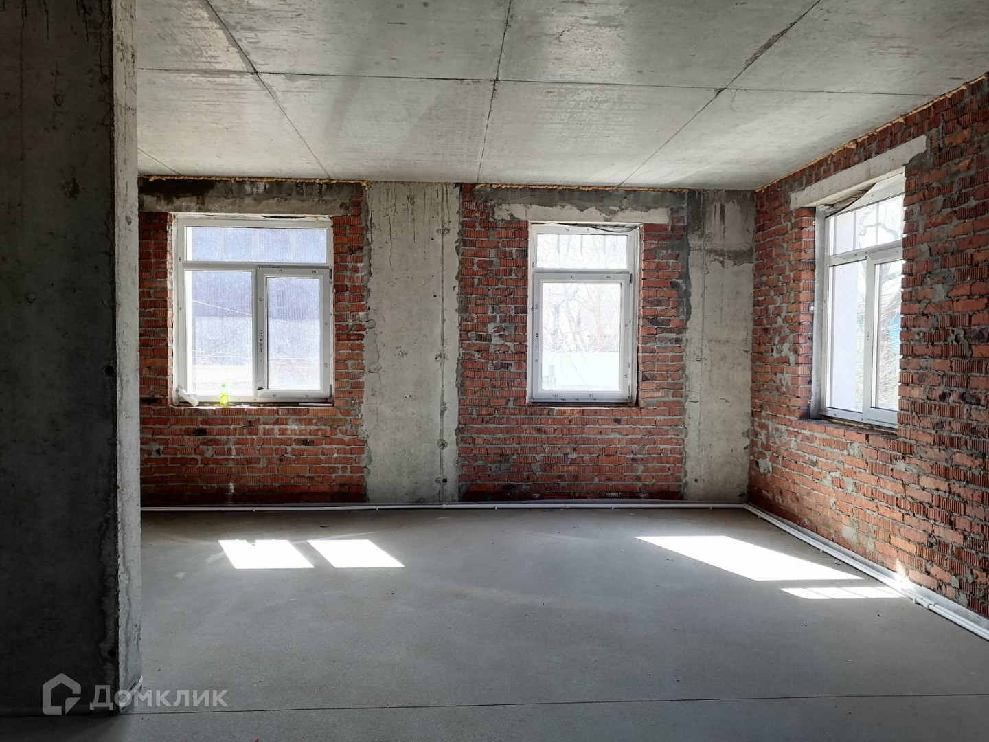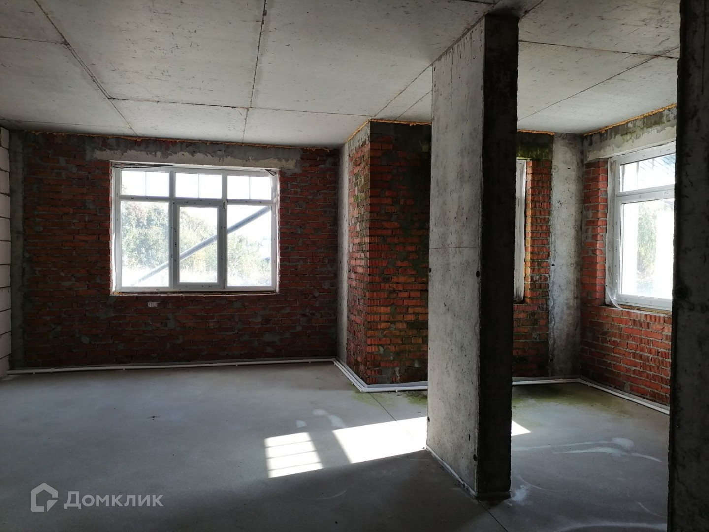 Дом уже построен, готовность к сдаче 95%, возведены межкомнатные стены, выполнена стяжка, установлены стеклопакеты.