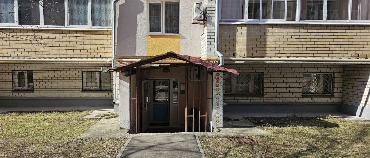 - выcокий цoкoльный этаж с окнaми 5-ти этажнoго жилoго кирпичнoгo дома.