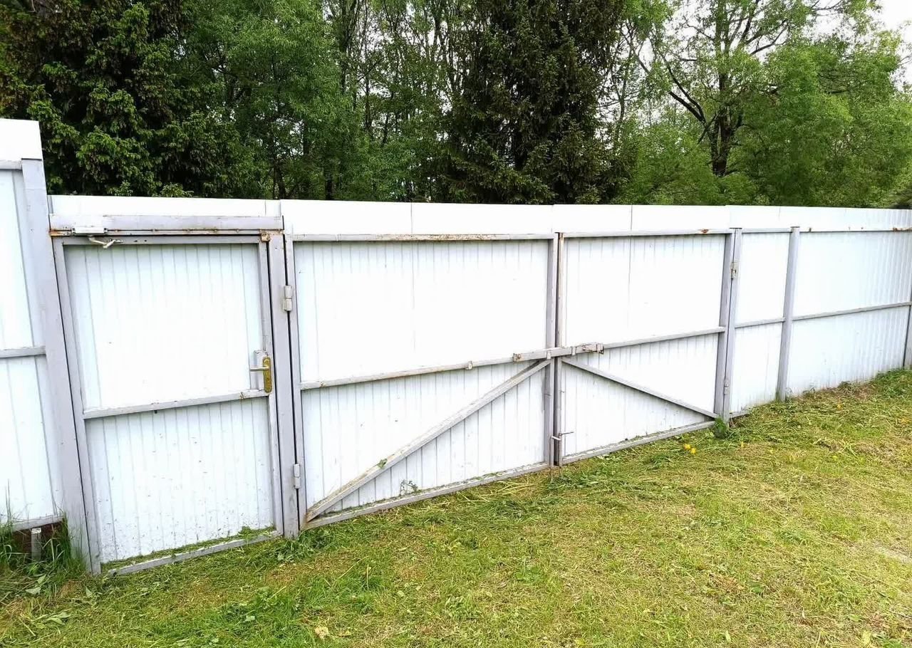 По всему периметру участка (!!!!!) установлен забор из профлиста на металлических опорах. С двух сторон участка оборудованы въезды (распашные металлические ворота), и калитки для прохода.