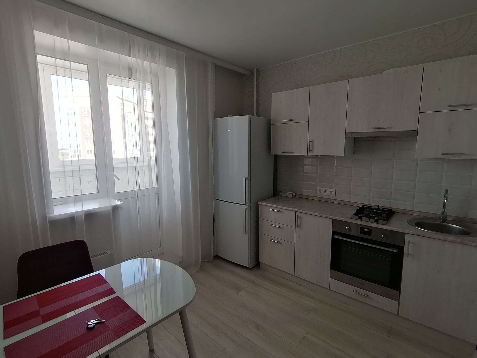 Сдается 1-я квартира в современном доме с крышной котельной и огороженной территорией, свежий ремонт, укомплектованна необходимой мебелью и техникой.