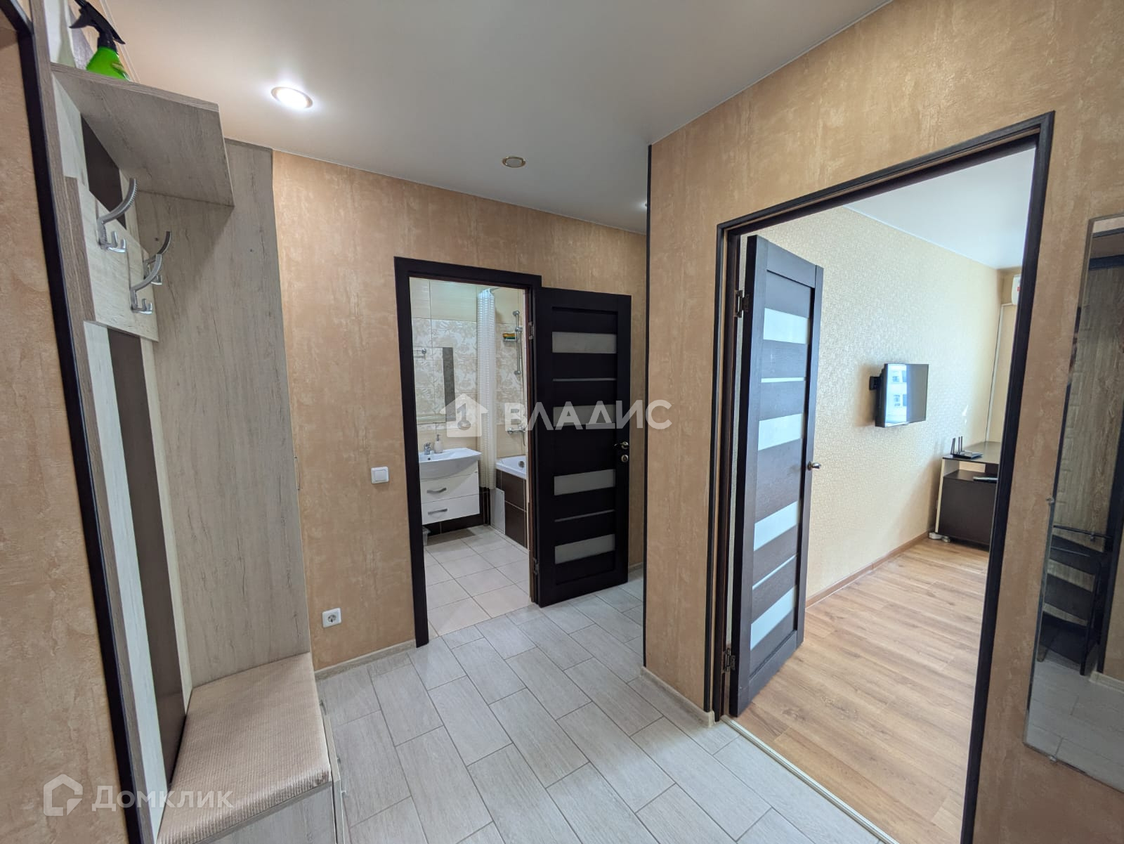 В квартире есть гардеробная, в ней гладильная доска, утюг, фен, наборы постельного белья.