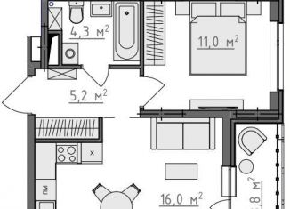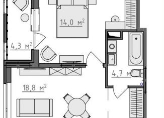 Продажа 1-комнатной квартиры, 42.9 м2