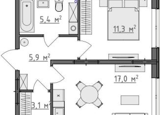 Общая площадь: 42.9 м2