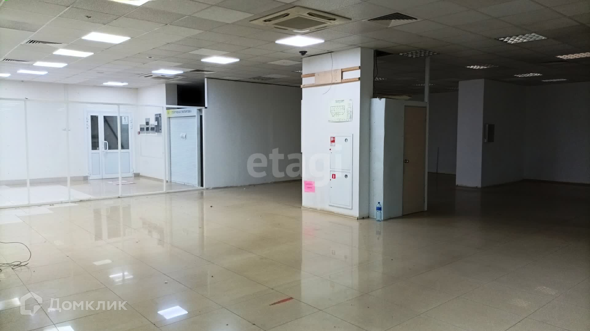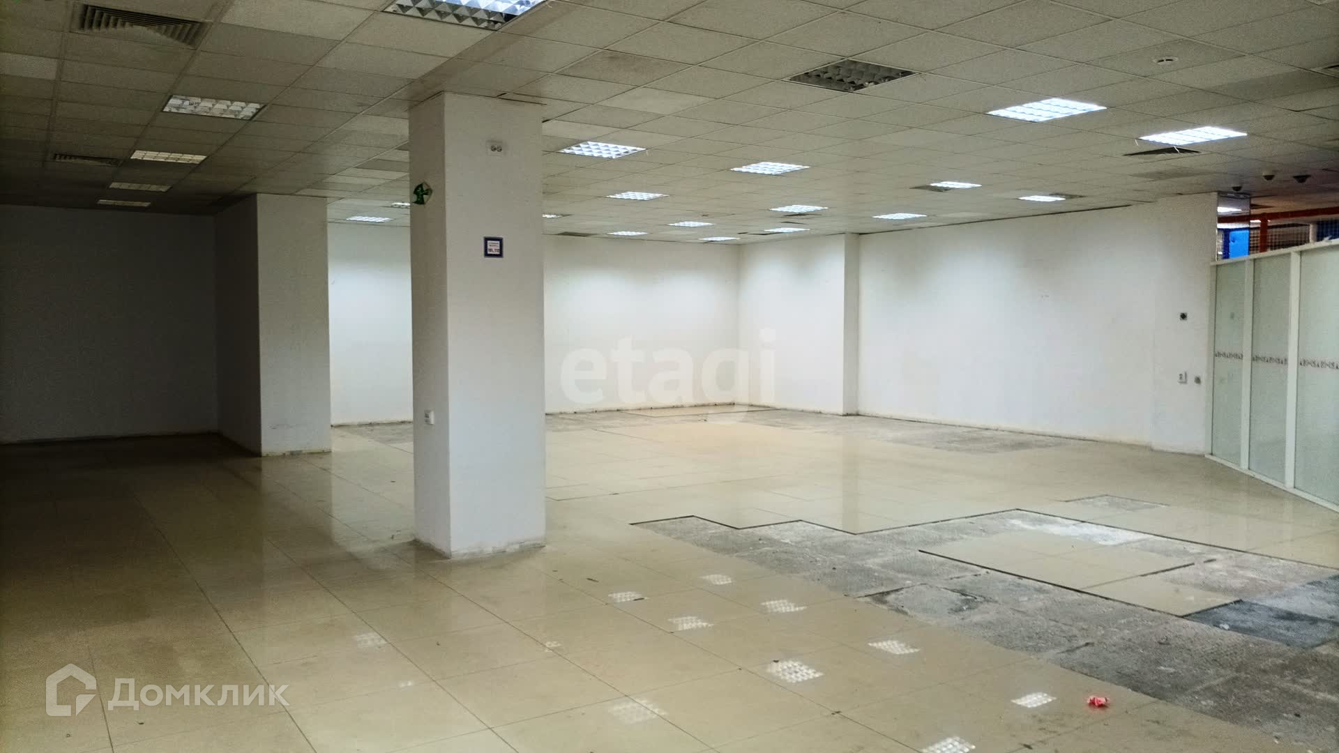 На полу плитка, потолок Армстронг, пожарная сигнализация, кондиционер.