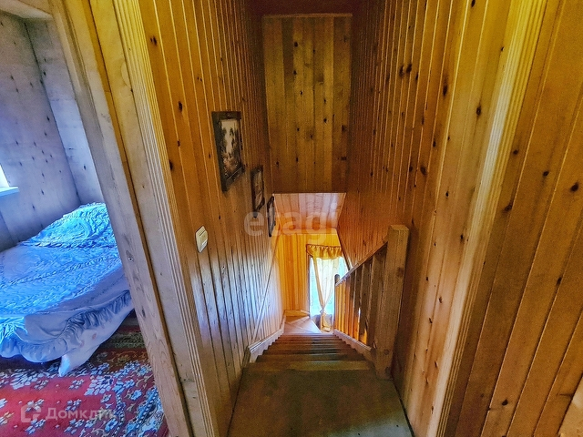 В доме на первом этаже две больших комнаты (зал и спальные комната), большая прихожая, совмещённая с кухней, на втором этаже расположены две спальни. Отопление в доме осуществляется при помощи камина.