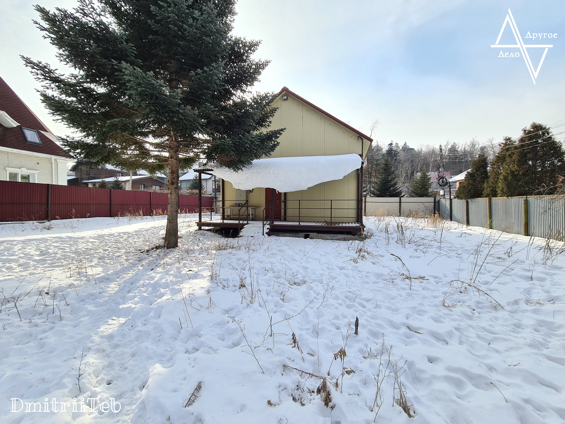 Огорожен участок со всех сторон забором.