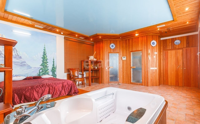 Спа-зона, банный комплекс 26.3 м2 с бассейном 9 м2 и баней на дровах. Спортзал 51.7 м2, есть бассейн на улице и веранде, несколько зон отдыха на участке.
