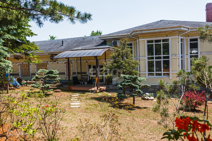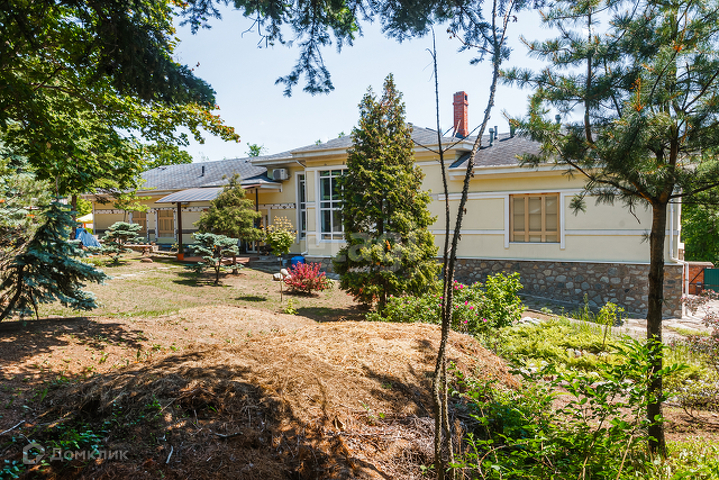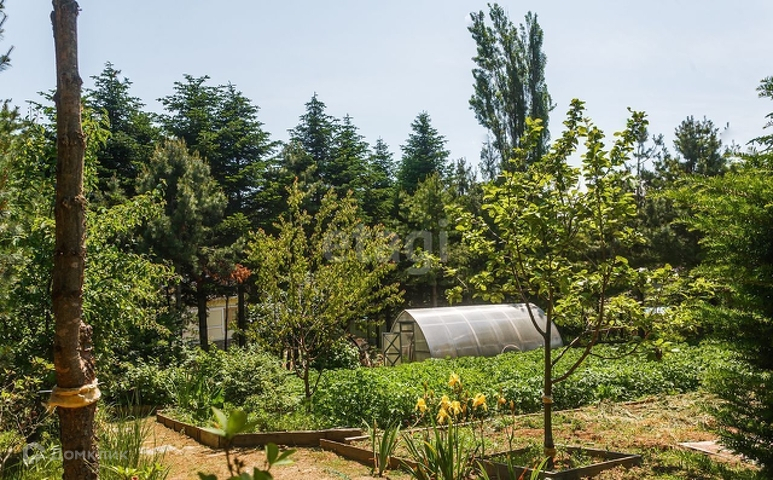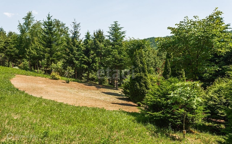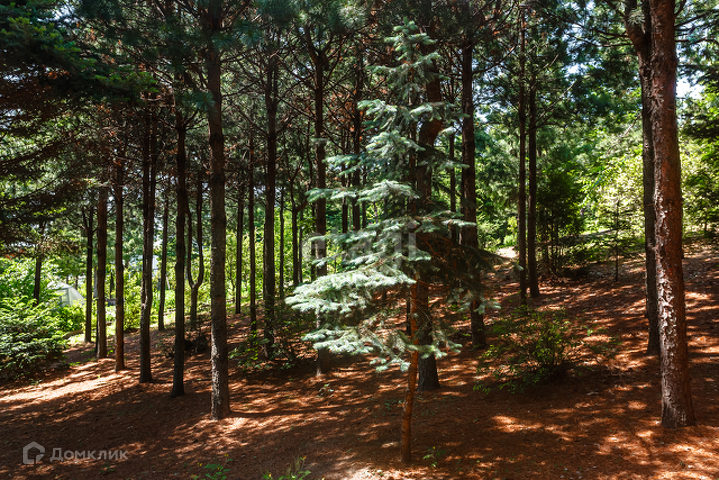 Территория участка ухожена и насыщена 50-летними кедрами и туи, 20-летние ели, сосны Веймутова, рябины, катальпы, деморфаны, магнолии, большая коллекция рододендронов, огромный цветущий каштан. Отдельно стоит отметить живую изгородь из тисов.