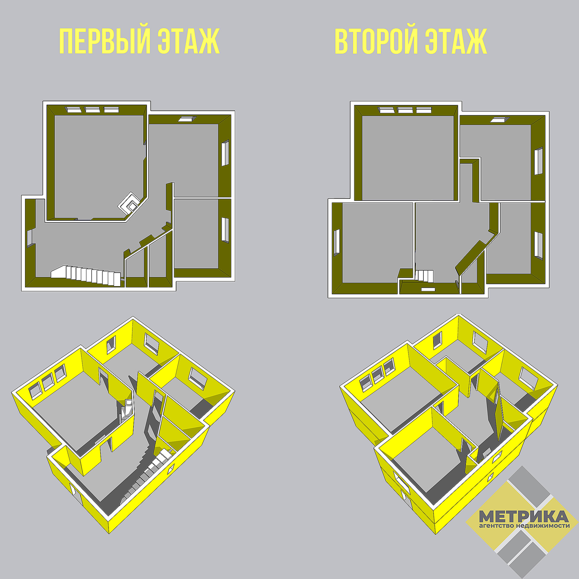 Первый этаж: кухня, спальная комната, гостиная, прихожая, раздельный санузел.
