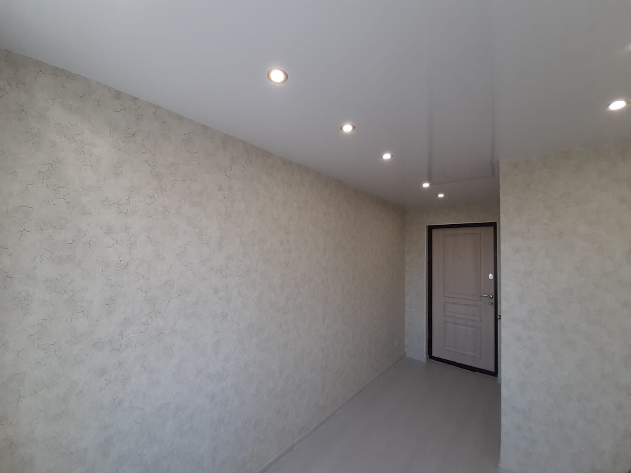 заменена проводка, установлен натяжной потолок,