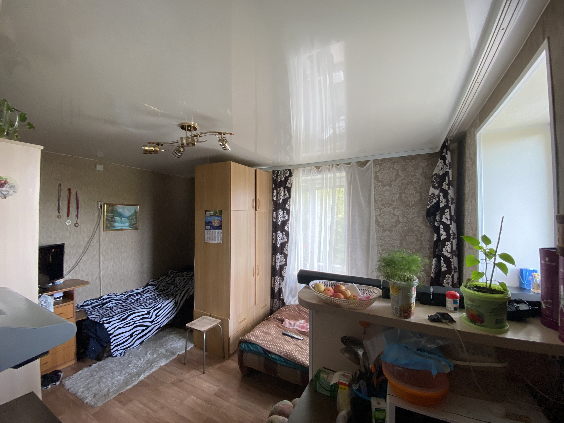Так же установлен натяжной потолок и пластиковые окна.