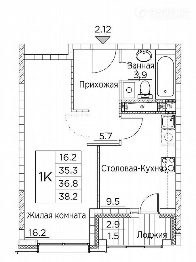 Общая площадь 38.2 м2