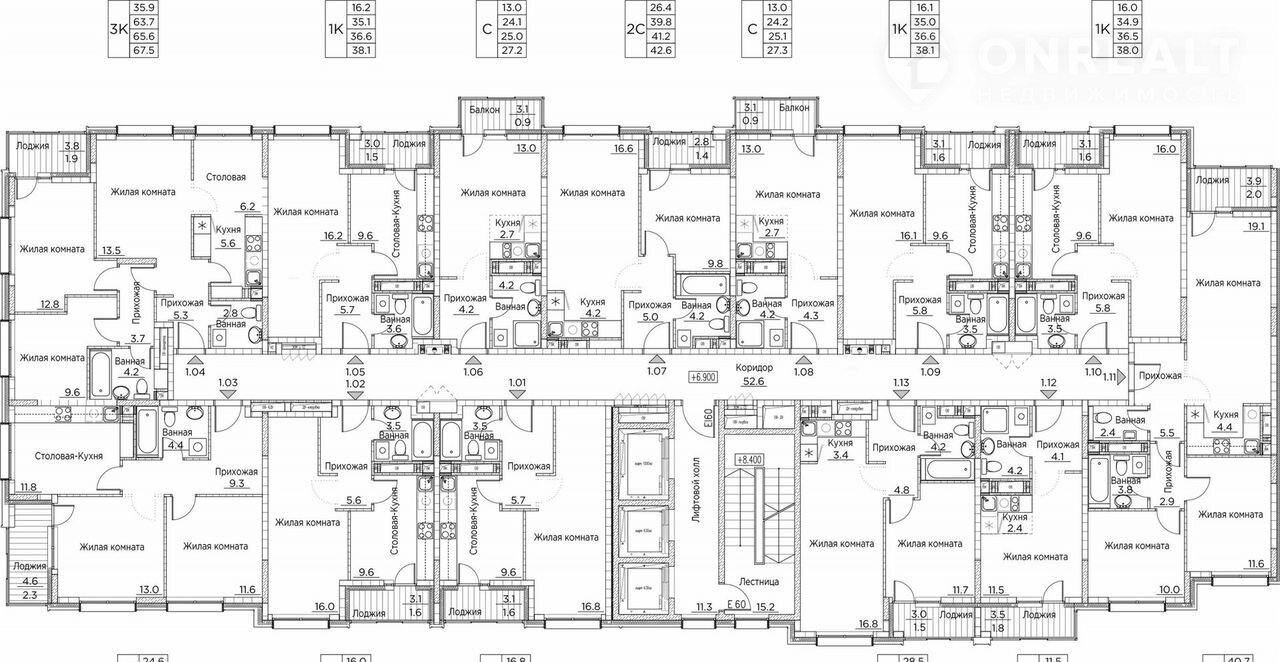 Балкон, лоджия 1 балкон