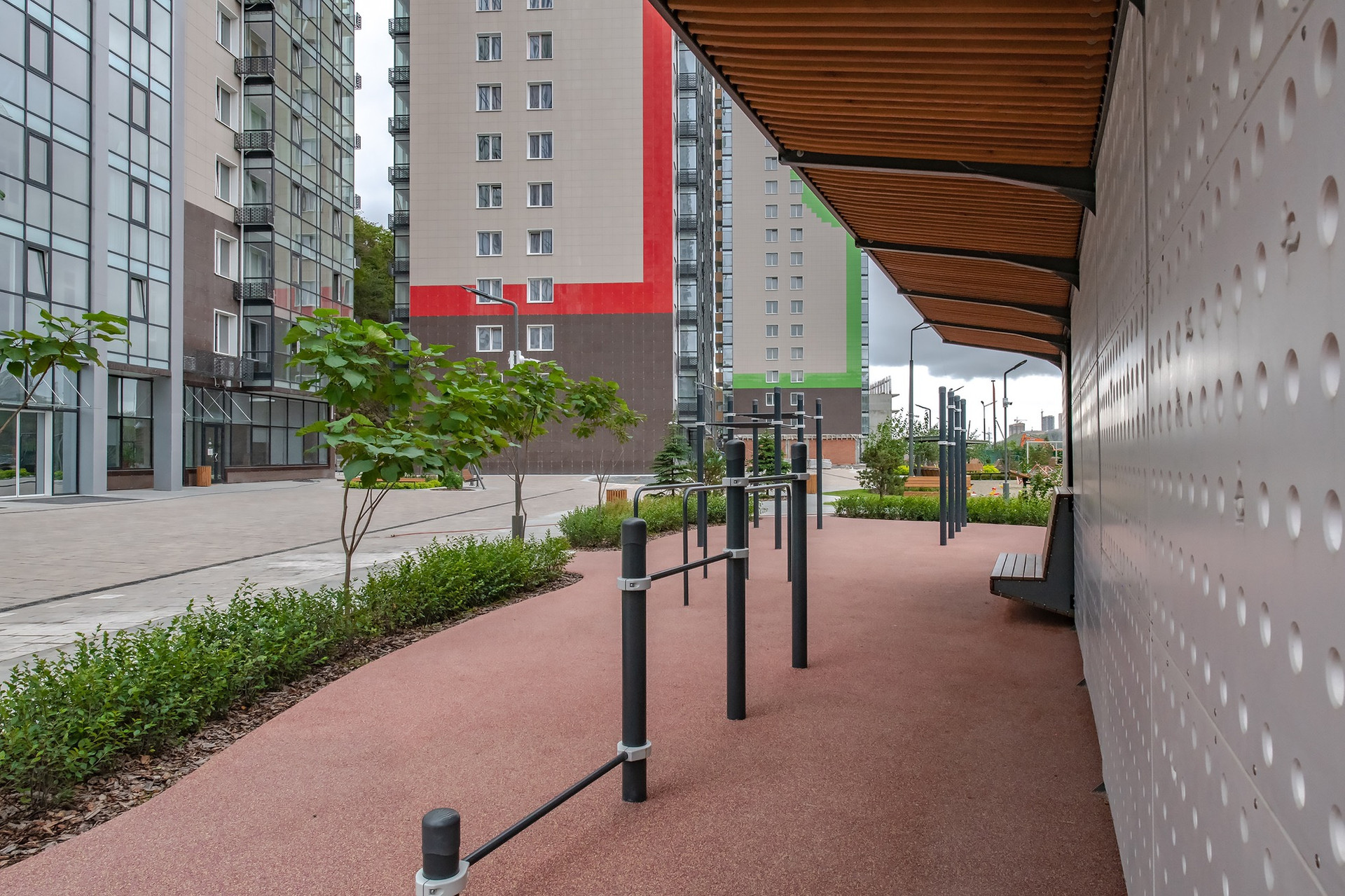 Единственный комплекс в нашем городе, в котором спроектирована довольно обширная придомовая территория, где вы можете погулять с детьми, позаниматься спортом и просто насладиться прогулкой.