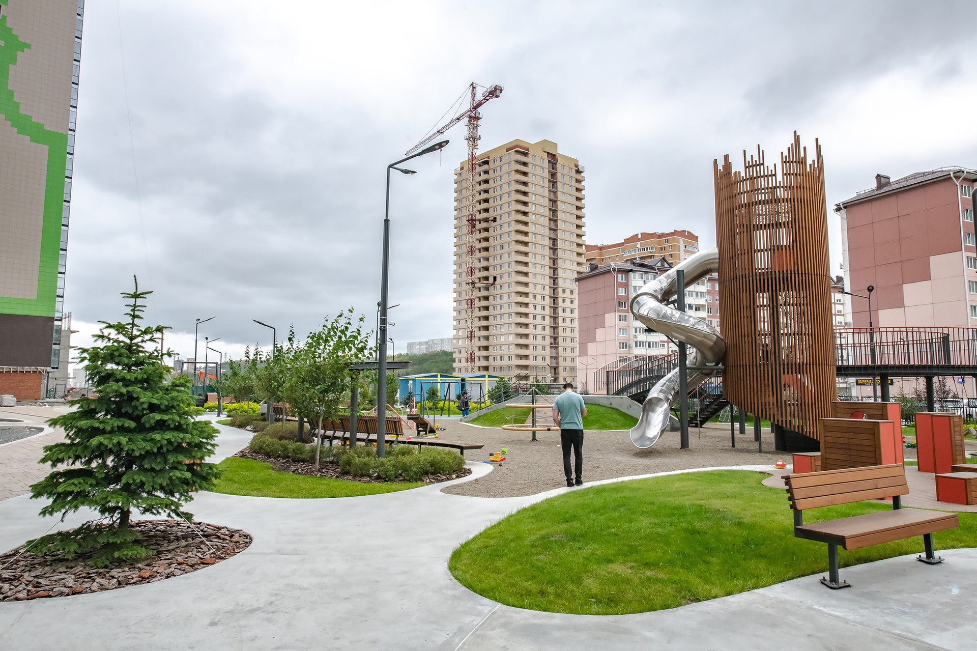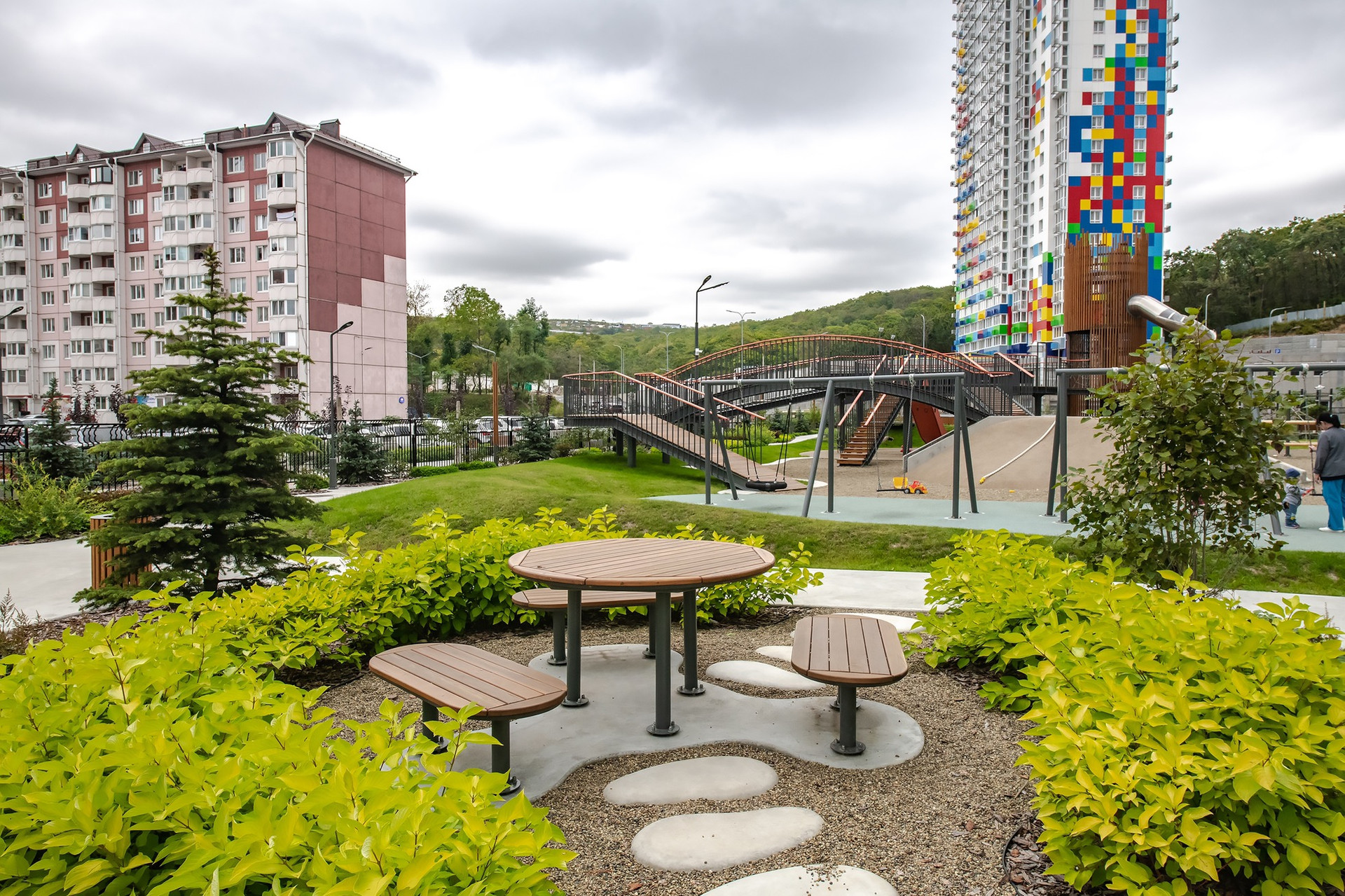 Новый микрорайон, который спрятался в долине между сопками, даёт ему уникальное преимущество, здесь и лесной массив и вся необходимая инфраструктура.
