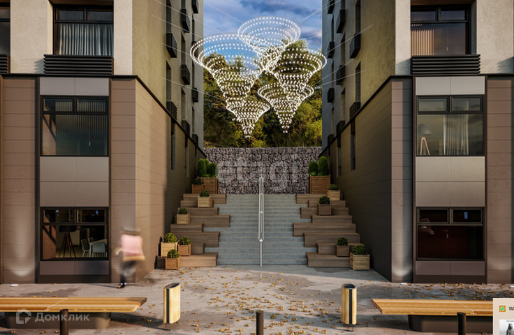 + Двор разделен на несколько зон, где находятся игровые площадки для детей разных возрастов, площадки для отдыха взрослых. По аналогии со smart-квартирами здесь у каждой семьи есть место для уединения и отдыха, но есть и пространство, где можно быть большой семьей.