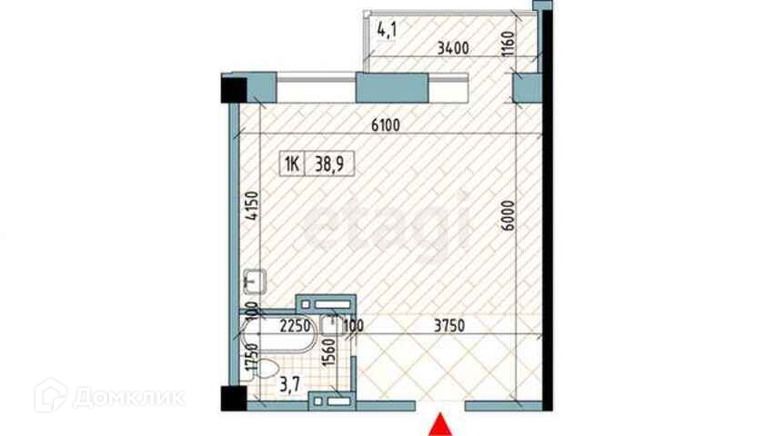 Общая площадь 37.6 м2