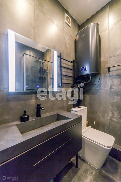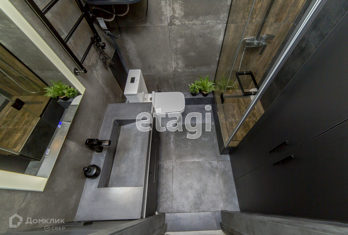 - С/у отделан керамогранитом, установлена душевая кабина;