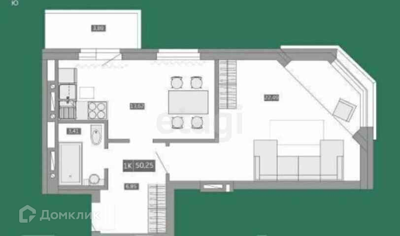 В квартире 3 окна, балкон, площадь по документам : 46,4 кв.м + балкон 3,9 кв.м- общая 50,25 кв.м.