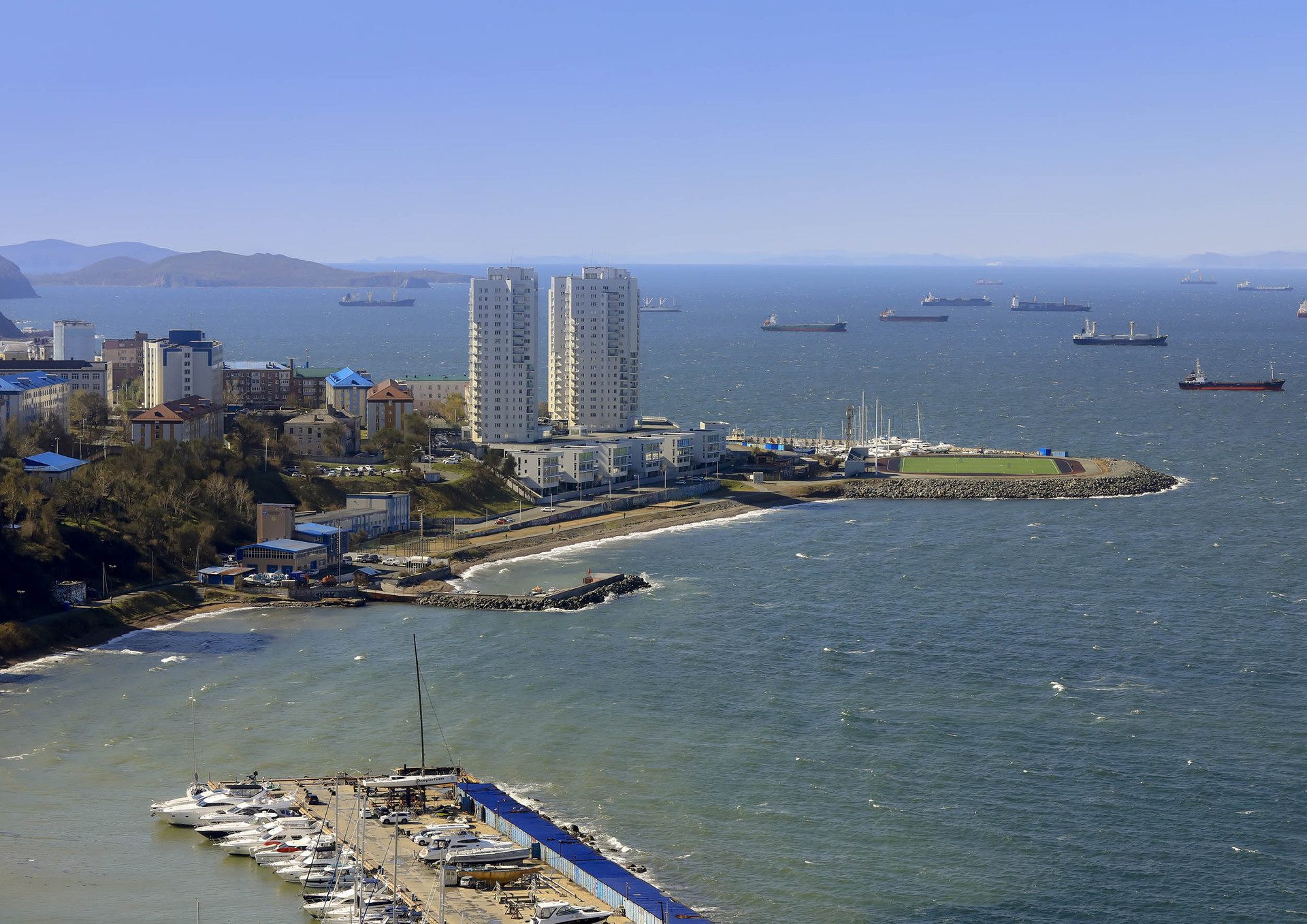 Квартира расположена на 21 этаже (номер на поэтажном плане №7 - первая башня). Выходит: на Восток (вид на бухту "Золотой Рог" и центр города) и Запад (Бухта "Амурский залив" и Яхт-клуб).